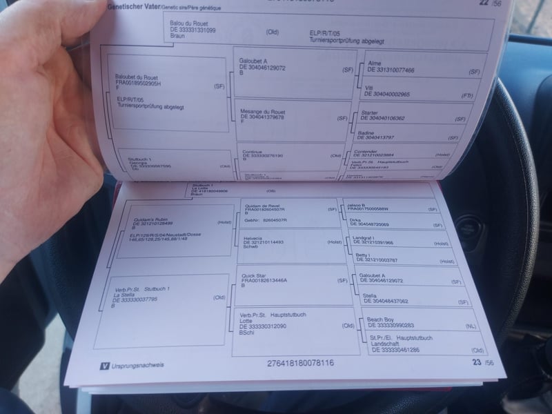 Jument absolument brave et très affectueuse avec de bons papiers recherche rapidement un nouveau foyer - avec des papiers de très bonne qualité, elle est extrêmement intéressante pour l'élevage ! Actuellement, elle boite de temps en temps à l'avant, ce qui la rend partiellement montable - elle a été montée et a une formation de base solide - en raison de la boiterie récurrente, elle n'est pas fiable pour le travail... Suspicion d'arthrose dans le membre antérieur - non confirmée par imagerie pour des raisons de coûts - plus de détails volontiers lors d'une conversation personnelle... Même si ce n'est plus obligatoire, je tiens à signaler qu'elle est sujette à la coprophagie. Une selle et un bridon peuvent éventuellement être acquis avec elle.