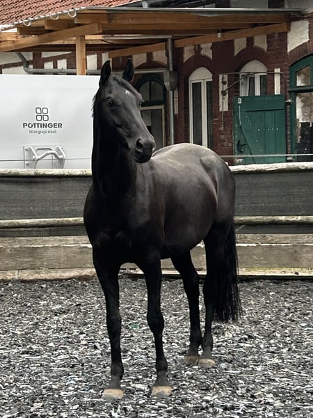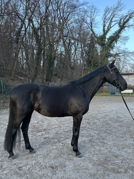 Schweren Herzens suche ich ein gutes Zuhause für meine fast 9 jährige Oldenburger Springpferde Rappstute (168cm). Namira kam im August 2022 als Problempferd zu mir. Da ihre vorherige Ausbildung offensichtlich nicht auf ihre Bedürfnisse angepasst worden ist, habe ich damals bei 0 neu angefangen. In den letzten 3,5 Jahren haben wir den Fokus fast ausschließlich auf den Umgang im Alltag, der Boden-,Longen-und Freiarbeit gelegt. Mit dem Ergebnis, dass sie sehr fein und leicht-aber bestimmt zu Händeln ist. Dabei arbeitet sie sehr motiviert und eifrig mit und will gefallen. Ich habe sie damals mit dem Status „angeritten“ übernommen, welchen wir erst im letzten Jahr wieder aufgegriffen haben. Hierbei zeigte sie sich zunächst unbeeindruckt, was sie aber bis zum heutigen Zeitpunkt nicht weiter fortführen konnte. Trotz verschiedener Trainingsansätze ist es uns noch nicht gelungen, ihr die Ruhe und Sicherheit von oben genau so zu vermitteln, wie vom Boden aus. Sie ist keineswegs bösartig, aber die Kompetenzen von mir und dem Team um sie herum, hören hier auf. Gesundheitlich gibt es keine Auffälligkeiten die ihr Verhalten, nur mit Reiter drauf, erklären würden (Mehr dazu im persönlichen Gespräch). Namira ist eine sensible und feine Stute, die das Herz absolut am rechten Fleck hat. Sie behält gern den Überblick und ist in unbekannten Situationen teils unsicher und schreckhaft, aber händelbar. Fühlt sie sich jedoch wohl, schmust sie gern und ist ein richtiger Clown, der einem zum Lachen bringt. Sie ist trotz der feinen Ausbildung am Boden, kein Anfängerpferd. Ich suche für sie ein Zuhause, in dem ihr die Zeit und Rücksicht gegeben wird, die sie braucht, welche ich ihr aufgrund von beruflicher Veränderung leider nicht mehr geben kann, trotz jeglicher Abwägung. Sie wird nur in eine artgerechte Haltung mit viel Auslauf und kleinem Herdenverbund abgegeben. Ich kann sie mir ebenfalls als gesunden Beisteller vorstellen, welcher vom Boden aus Freude macht und wo das Reiten nicht im Fokus liegt. Vielleicht wäre auch die Zucht eine Option. Sie ist geimpft, entwurmt und Barhufer. Händler und Schulbetriebe sind ausgeschlossen. Platz vor Preis hat höchste Priorität, da es mir wichtiger ist, dass sie ein Zuhause findet, in dem sie trotz ihrer Vorgeschichte und einhergehenden Probleme geschätzt und geliebt werden darf.