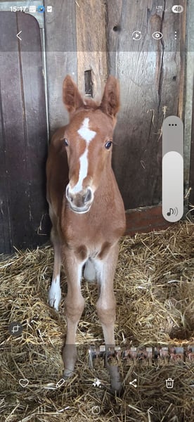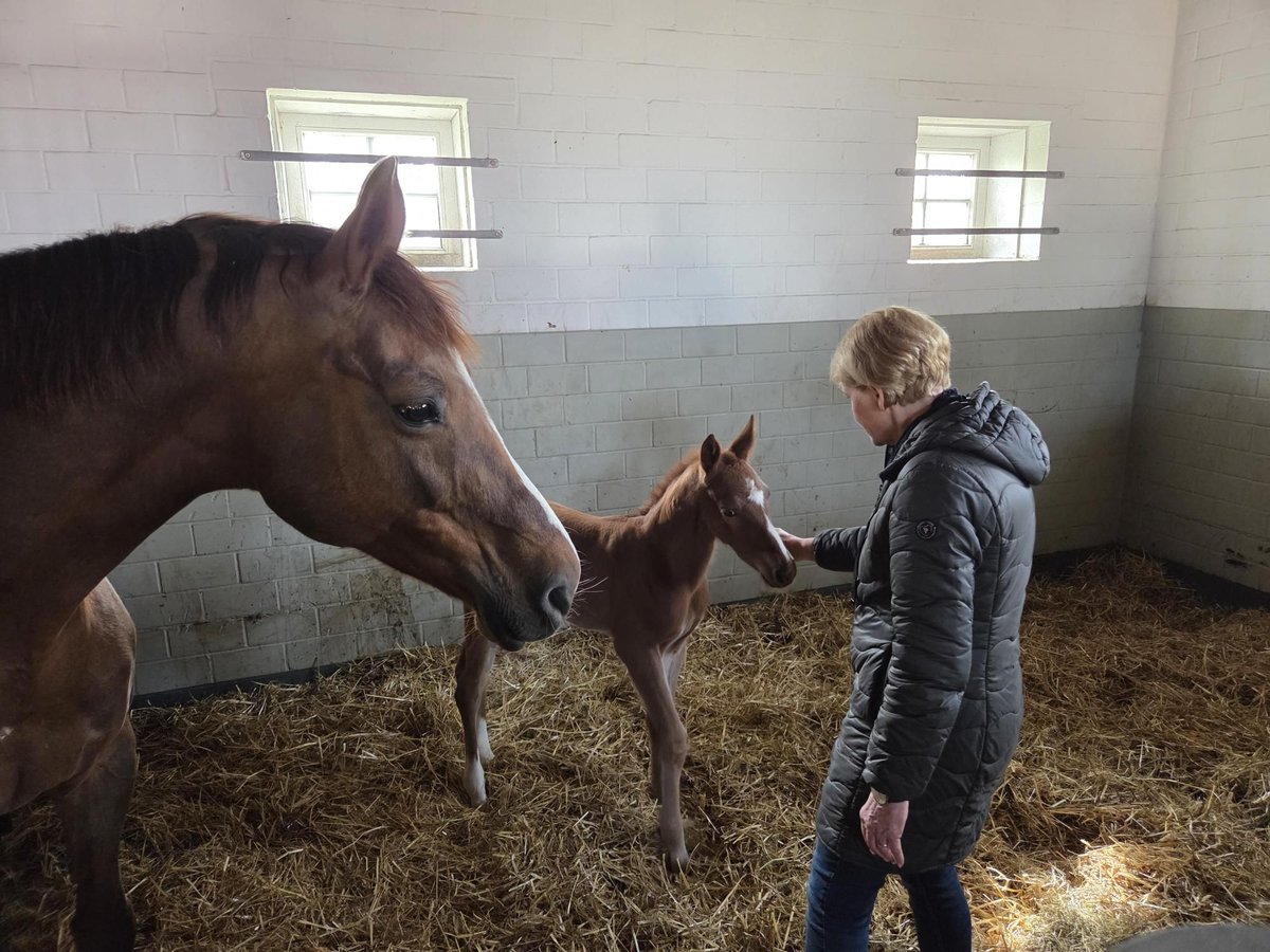 Besonderes Stutfohlen v. Ogano Sitte x Light On x Balou du Rout aus sporterfolgreicher Mutter (geb. 31.03.2026). Auf den Bildern ist das Fohlen 2 Tage alt. Die Mutter (170 cm Stockmaß) - zum dritten Mal perfekt angepaart mit Ogano Sitte - platzierte sich 2016 im Finale des Bundeschampionats der 6-jährigen Springpferde unter den Top Ten ( 3 x Null) und war anschließend international in Youngster-Touren bis 1,35 m erfolgreich. Sie ist Halbschwester zu dem bis 1,40 m erfolgreichen Wallach Dinan (Heinrich Holtgers). Mit Ogano Sitte steht ein Hengst im Pedigree, der seit Jahren für konstante Qualität im internationalen Springsport steht. Seine Nachkommen sind weltweit bis 1,60 m erfolgreich und überzeugen nicht nur durch Vermögen und Technik, sondern vor allem durch ihre Einstellung und Einsatzbereitschaft. Während bewährte Spitzenpferde wie Aganix du Seigneur den großen Sport geprägt haben, wächst aktuell eine breite, leistungsstarke Generation nach. Viele seiner Nachkommen etablieren sich konstant im Bereich 1,45 m bis 1,55 m und empfehlen sich klar für höchste Aufgaben. Der Vollbruer 2025 ging über die Elite-Fohlenauktion. Die Vollschwester 2024 befindet sich in meinem Besitz.