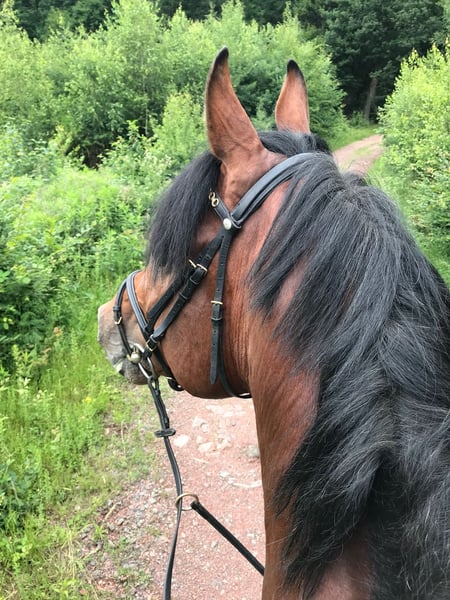 I have had Leon for 10 years. He has never exhibited stallion behavior, often stands beside mares or goes out riding with them. He has never been ill. At age 6, he sustained a kick injury in the pasture, which caused chips to form. These were completely removed through surgery. Since then, he has been regularly ridden for leisure. A few weeks ago, he competed in a beginner-level dressage and a beginner-level jumping class with a novice rider, and he placed in both! He really enjoys going out on rides. Generally, he is a rather relaxed and easygoing companion. Therefore, he is very well suited for a nervous rider or a beginner. He is very friendly, very handsome, well-behaved in handling, shoeing, and loading, and one of his favorite activities is definitely munching on lots of hay 😄 Space is more important than price.