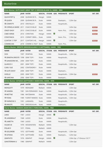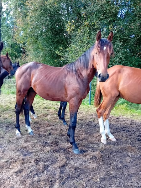 Zum Verkauf steht ein brauner Hengst vom 11.05.2024 von Qlassic Touch aus einer Quidam de Revel Mutter. Der Vater Qlassic Touch überzeugt derzeit mit seinem Reiter Reto Weishaupt mit herausragenden Noten im Youngstar-Sport. Die Mutter Queen (Staatsprämienstute, Freispringen 9,0) entspringt einem der besten Stämme der Hannoveraner Springzucht (Züchter Joachim Schwarze). Aus diesem Stamm waren zahlreiche Pferde international bis 1,55m erfolgreich.