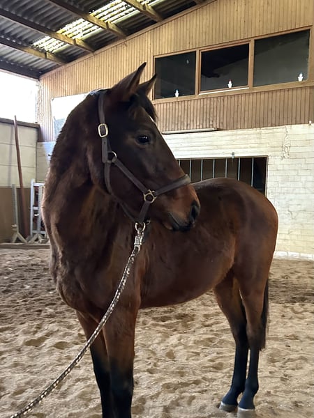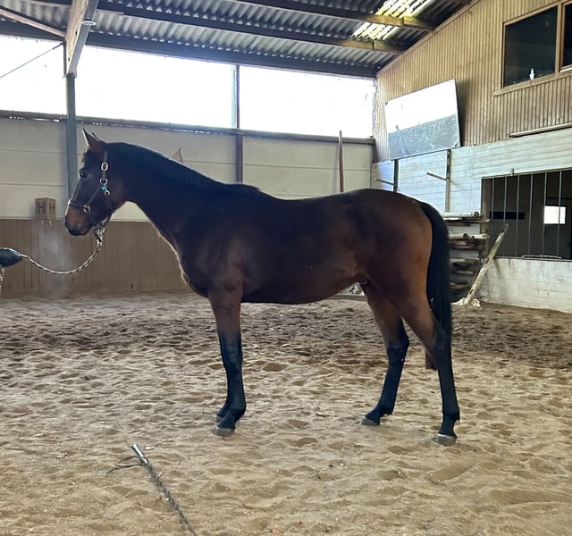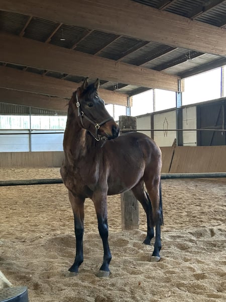 Zum Verkauf steht ein vielversprechender, 2,5-jähriger Oldenburger Springpferdehengst. Der Hengst stammt väterlicherseits von Syltwind (v. Samenco II) ab, mütterlicherseits von Don Juan x Tumble Wind xx. Er ist derzeit ca. 155 cm groß und überzeugt mit drei guten Grundgangarten sowie einer harmonischen, modernen Erscheinung. Aufgrund von Zeitmangel wurde er bislang noch nicht gearbeitet. Im täglichen Umgang zeigt er sich jedoch sehr artig, menschenbezogen und unkompliziert. Videos vom Freilaufen sind vorhanden und können gerne zur Verfügung gestellt werden. Auf Wunsch können weitere Jungpferde ebenfalls besichtigt werden.