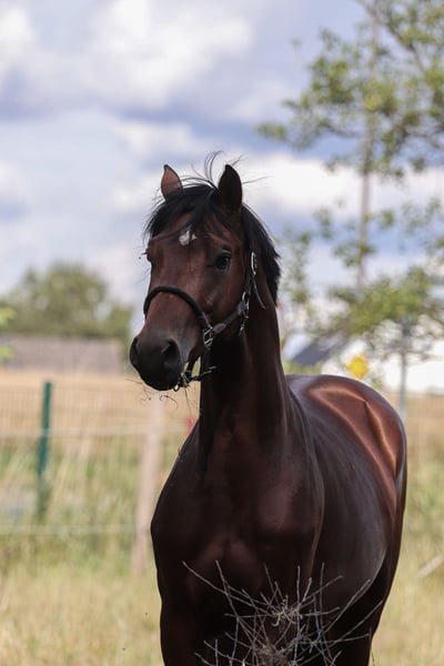 Blizzard ist ein Hengst wie aus dem Bilderbuch er überzeugt nicht nur durch seine super schöne Optik sondern auch durch seine sportliche Aktivität . Er ist vom Typ her einer der immer alles richtig machen möchte. Blizzard war zur Körung zugelassen leider wurde bei der Schluss Untersuchung festgestellt das er einen Ton hat wo er dan zur Körung natürlich nicht mehr konnte. Der Restliche TÜV ist einwandfrei darum steht auch nichts für seine sportliche Karriere im großen Sport nichts dagegen. Blizzard ist schon Anlongiert und kennt natürlich das Freispringen und wartet jetzt darauf das jemand ihn weiter ausbildet uns fehlt leider die Zeit dafür.