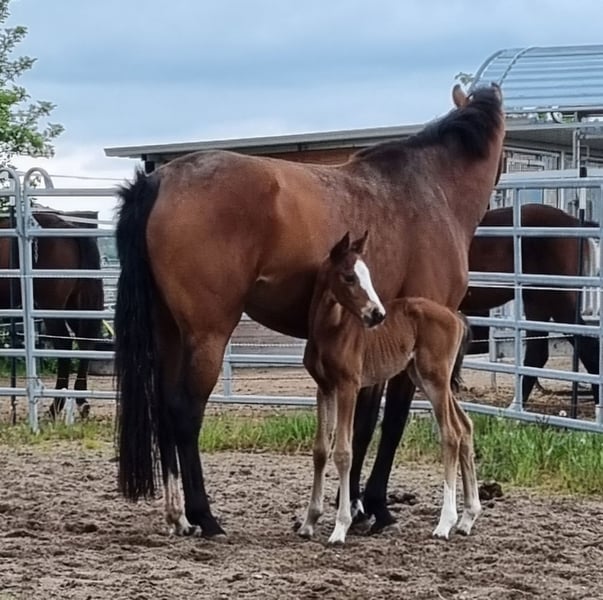 Jumping-bred colt in colorful coat. Absolute performance blood on both the maternal and paternal sides. Prominent relatives: Rocca R.T OLD, finalist at the Bundeschampionate, now successfully competing internationally in the USA. Noche de Ronda - winner of the Grand Prix of Aachen with McLain Ward. Sire is the young stallion Canoche de Ronda by Chacfly - licensed and approved for Oldenburg and Mecklenburg. Dam is by Conthalou / Lovis Corinth. The stallion is also available for viewing at our farm. Location: 76777 Neupotz near Karlsruhe, Tel +49 176 20430533.