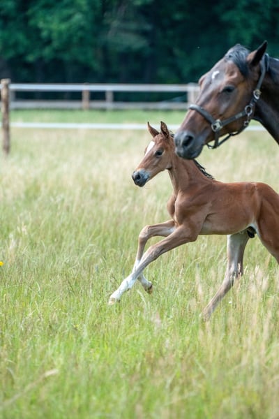 Arctos S ist ein im Juni 2025 geborenes Hengstfohlen von dem amtierenden Bundeschampion der 5-jährigen Springpferde Arcassio, aus einer Favorit ASK x Adelante x Cassini Mutter. Er wächst im Herdenverband mit anderen Hengst-u. Stutfohlen auf, wo er bei Interesse grundsätzlich auch die Aufzucht über bleiben könnte. Er ist Erstling, wird aber groß genug werden (schätzungsweise um die 170cm). Seine Mutter war als junges Pferd bereits in Springpferdeprüfungen platziert, wurde von ihrem Besitzer dann aber nicht weiter auf Turnieren vorgestellt. Als ich sie aus gesundheitlichen Gründen des Besitzers übernahm, starteten wir wieder auf Turnieren und waren auch fix wieder bis M-Springen unterwegs, bevor ich mich dann dazu entschied, diese Stute auf Grund ihrer Qualität in der Zucht einzusetzen. Sie war immer sehr rittig, mit guter Arbeitseinstellung, guten Go, Vermögen und Übersicht ausgestattet. Im Umgang und auch jetzt im Handling mit dem kleinen ist sie völlig unkompliziert. Arctos kennt das Fohlen ABC, Hufschmied, Hunde, Katzen, Ziegen, Trecker. Er ist täglichen Weidegang und nachts Box gewöhnt. Schmuseeinheiten und das spielen mit seinen Kumpels liebt er. Eingetragen wird er über einen Sammeltermin bei uns am Hof im Oldenburger Springpferde verband, da ich auch hier die Stute eintragen lassen möchte, da all meine anderen Stuten auch eingetragen sind. Abgesetzt wird er im Dezember und könnte dann auch ggf. umziehen. Da wir auch eine Halle haben, ist ein kennenlernen jederzeit möglich.
