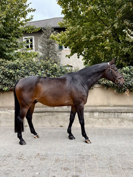 **Sales Advertisement: Oldenburg Show Jumping Horse** For sale is an Oldenburg show jumping horse with a height of approximately 1.70m. This gelding, born in 2015, impresses especially with his rideability and honesty over jumps. He is equipped with the necessary scope and caution to be interesting for the competition-ambitious amateur. Whether in show jumping or in daily dressage work, he always aims to please and do everything right. He is familiar with cross-country courses and obstacles and goes into the water without any issues. Furthermore, he is well-behaved in the field and remains calm in road and agricultural traffic, trusting his human companion. He can be ridden by both teenagers and adults with varying riding skills, but in the long term, he needs a confident rider with overview and sensitivity. Currently, he is being ridden by an experienced 18-year-old rider and is being sold into the best hands due to the start of her studies. If interested, I am happy to provide further information, pictures, and videos.