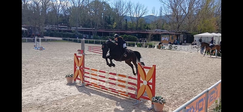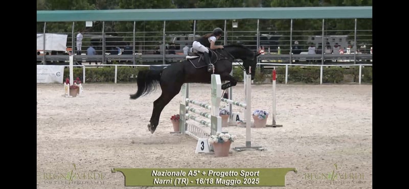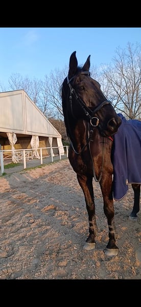 Oldenburger, 178 cm at the withers, with a heart of gold. Has competed up to 135 cm in Germany and up to 115 cm here in Italy with me, without any issues. Excellent work ethic, can stay calm in the flat and is suitable for turnout in the paddock.