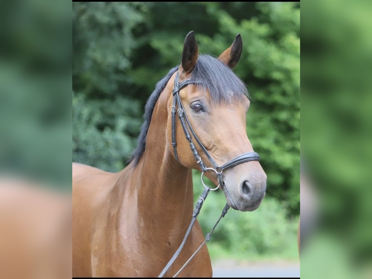 Zum Verkauf steht ein liebenswerter Wallach mit ehrlichem Charakter und Herz. Er ist erst sehr spät angeritten, hat daher erst 8-jährig seine Turnierkarriere gestartet und sich zum Schleifensammler entwickelt. Im Springtraining, sowie im Parcours auf dem Turnier ist er stets motiviert, absolut leicht zu händeln und verzeiht auch Reiterfehler. Auf den häufig überfüllten Abreiteplätzen bleibt er entspannt und gelassen. Zur Abwechslung auf dem Reitplatz genießt er regelmäßige Ausritte ins Gelände - sowohl alleine als auch in der Gruppe ist er brav und nervenstark, auch bei Ritten an befahrenen Straßen. Da Naturhindernisse für ihn kein Problem sind, eignet er sich sicherlich auch für die Vielseitigkeit. Durch seine Größe von 168 cm wäre er ein ideales Umsteiger- oder Familienpferd. Er fährt alleine oder zu zweit im Anhänger, kennt Trecker, Hunde und Kinder. Da ich es zeitlich nicht schaffe ihn weiter zu fördern und mich auf meine weiteren Pferde und die Ausbildung meines Jungpferdes konzentrieren möchte, gebe ich ihn in gute Hände ab. Mein Brauner freut sich über Auslauf auf dem Paddock oder der Weide, ist aber auch absolut händelbar, wenn er sich wetterbedingt nicht viel bewegen konnte. Er ist gesund, regelmäßig geimpft, entwurmt und hat einen FEI-Pass. Für weitere Informationen, Videos oder Rückfragen bei ernstgemeintem Interesse, stehe ich gerne zur Verfügung. 015208698794 Sollte die Mailbox rangehen, rufe ich zeitnah zurück.
