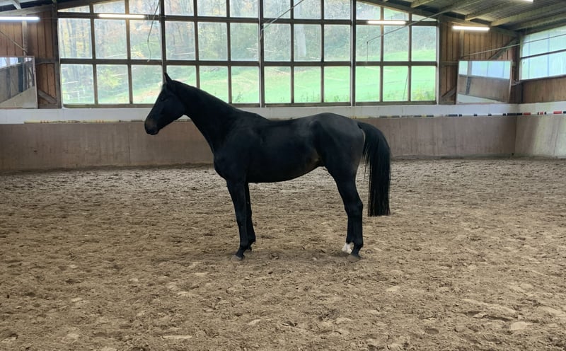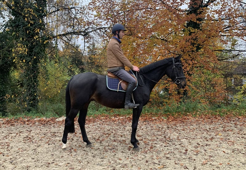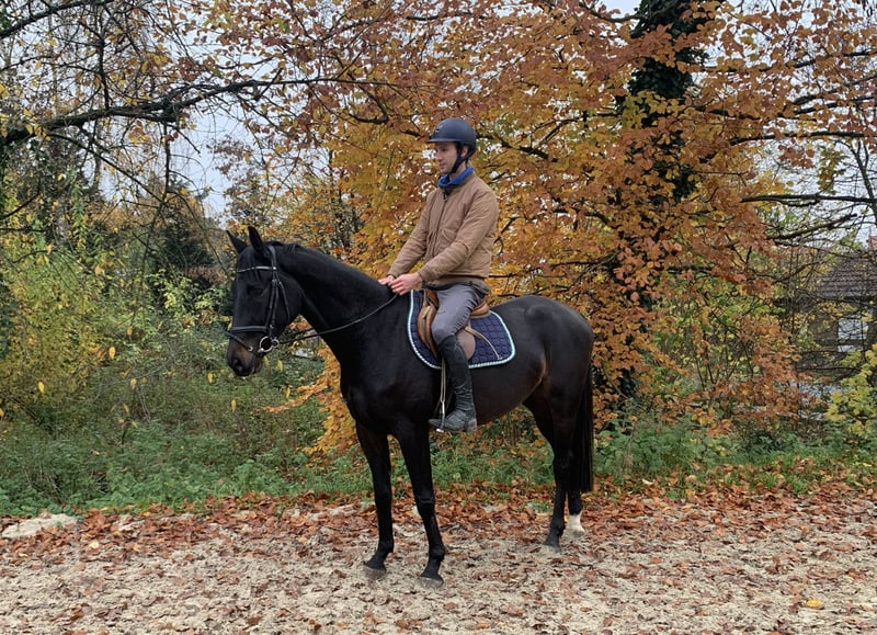 Im Frühjahr angeritten, durfte dann den Sommer in Begleitung einer Stute auf der Weide verbringen. Seit ca. acht Wochen ist er wieder unter dem Sattel, um das kleine Einmaleins weiter auszubauen. Ritttigkeit, Gelassenheit, Gehorsam, super im Umgang und er bringt alles mit, was man sich für ein Sportpferd wünscht.