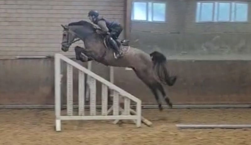 Beautiful Typey Stallion from a Successful Mother at 1.50 m for Sale For sale is a typey 3.5-year-old grey gelding by the sire Verdi TN, who currently has 75 offspring, all of which have competed successfully at a minimum height of 1.60 m (source: https://www.horsetelex.nl/horses/pedigree/43162/verdi-tn). His dam herself has achieved wins up to 1.50 m and is known for her cautiousness and speed. The Holsteiner mare line 7126 is one of the most successful dam lines in show jumping breeding worldwide, producing notable horses such as Bella Donna, Acord I-II, Burggraaf, and Quidam. Videos of the dam and siblings are available and can be shown during viewing. The stallion is well-started under saddle and is currently being introduced to his first jumps. Thanks to his compact build, he is easy to ride and thus particularly interesting for an ambitious amateur rider with some young horse experience. He measures approximately 1.66 m (16.1 hh), with an expected final height of around 1.70 m. Upon purchase, the stallion can also be gelded and retrained with us, making him ready to move into his new home as a riding gelding.