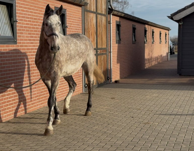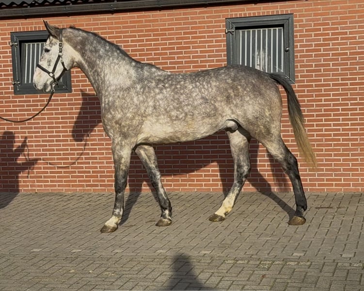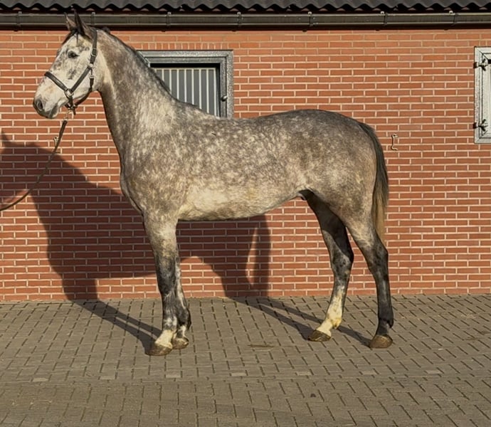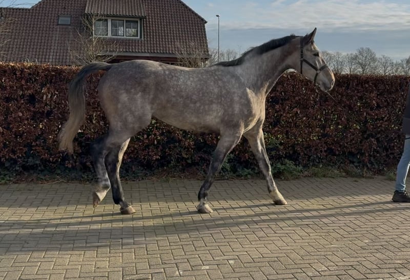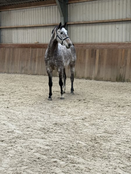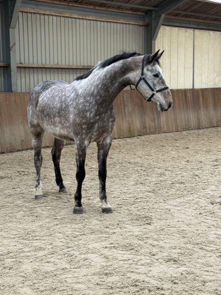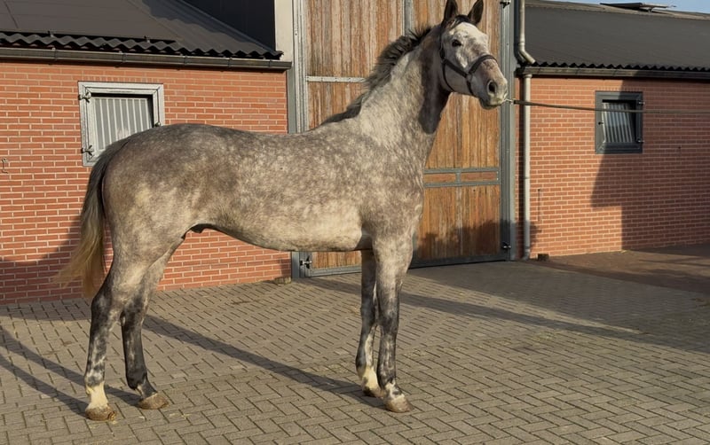 Regal grey gelding with an impressive presence. This grey can excel in show jumping with a distinctive style. He combines boundless talent with excellent technique. He is offered at a fair price, as you can hear a slight noise during exertion, possibly a mild form of wind puffs. For inquiries, please call or WhatsApp: +31 (0) 643197337