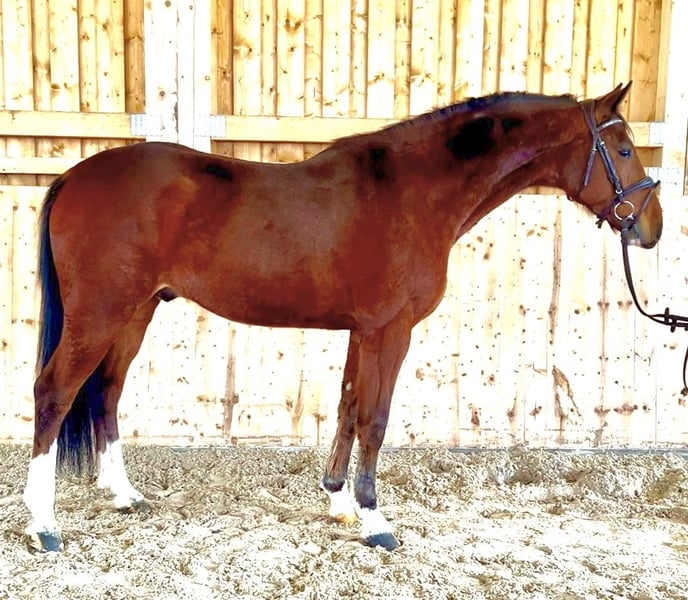 Wunderschöner 5-jähriger Wallach direkt vom Züchter zu verkaufen Zum Verkauf steht ein traumhafter 5-jähriger Wallach direkt vom Züchter. Dieser bildschöne junge Mann überzeugt nicht nur durch seine tolle Optik, sondern vor allem durch seinen lieben und ausgeglichenen Charakter. Er ist aktuell gerade angeritten und zeigt sich dabei sehr brav, lernwillig und stets motiviert. Unter dem Sattel ist er super rittig, fein an den Hilfen und vermittelt ein angenehmes Reitgefühl. Die Wechsel springt er bereits sicher und auch an die ersten Sprünge wird er derzeit behutsam herangeführt – auch hier zeigt er sich talentiert und aufmerksam. Ein Pferd mit viel Potenzial, das sowohl für ambitionierte Freizeitreiter als auch für den sportlichen Weg interessant ist. Durch seine ehrliche Art und sein tolles Wesen ist er ein echter Partner für die Zukunft. Der Verkauf erfolgt ausschließlich, da der Züchter seinen Bestand verkleinern und sich künftig etwas reduzieren möchte – nicht aus Mangel an Qualität. Röntgenbilder: o.b.B Bei Interesse freuen wir uns über Ihre Nachricht.