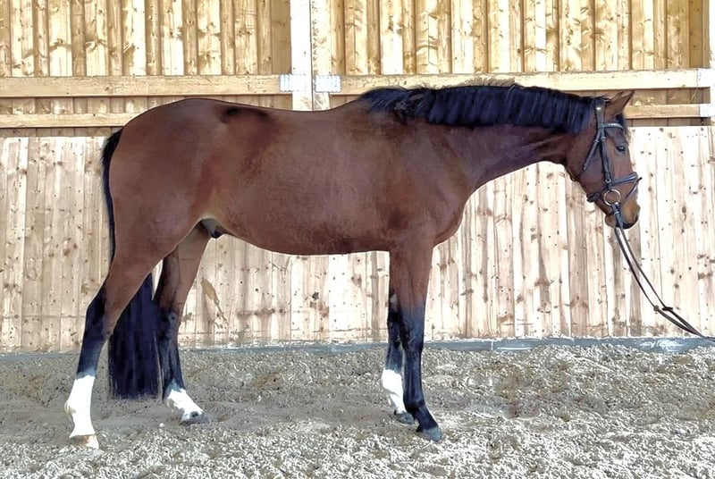 Attractive 5-year-old gelding from a breeder For sale is a very typey 5-year-old gelding directly from the breeder. He impresses with his elegant appearance and harmonious presence. In terms of temperament, he is absolutely lovable, friendly in manner, and very attentive to people. He consistently behaves well, is alert, and uncomplicated — a horse with a truly wonderful character. The young gelding was recently gently backed and is pleasant to ride during this process. He is sensitive to aids, learns quickly, and brings great joy to his rider. Currently, he is gaining his first experience over jumps and shows motivation and talent. The sale is solely due to the breeder’s wish to reduce his stock and scale down in the future — not due to a lack of quality. A promising young horse with a solid foundation for successful further training. If interested, we look forward to hearing from you.