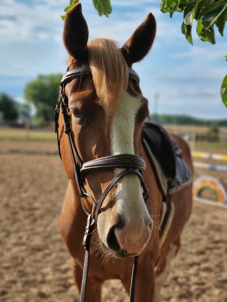 "Andi" nasze koń Barbie - piękniej nie dałoby się go namalować. 5-letni wałach po pożądanym Andiamo Z z klaczy For Pleasure najwyższej jakości. Absolutny typ przyjaciela, ze względu na swój wiek oczywiście nie jest jeszcze odpowiedni dla niepewnych jeźdźców. Piękne chody, bardzo wygodne w siodle i przyjemny w kontakcie. Po wsiadaniu jeszcze był na pastwisku i jest trochę zielony, potrzebuje pewnego jeźdźca, aby zapewnić dalsze szkolenie, obecnie z powodzeniem brał udział w swoich pierwszych zawodach skokowych. Załadunek na ciężarówkę i przyczepę również przebiega bez problemów, zna życie w stadzie, 24 godziny na zewnątrz, je wszystko i jest bardzo bezproblemowy. Matka Andiego, Zara, była zwycięska w skokach do poziomu M i została następnie wykorzystana jako koń nauczycielski dla młodej jeźdźczyni, ma dwoje pełno rodzeństwa, które oboje odnoszą sukcesy do 1.45m. Jest niezwykle wygodny w siodle i skacze z talentem i przemyślnością, możemy sobie go bardzo dobrze wyobrazić (nie ostatnia ze względu na jego wspaniały wygląd) jako konia dla dziewczyny. Dobry TÜV. Brak możliwości, brak przyjęcia w rozliczeniu, płatności ratalne itp. Na zapytanie przy poważnym zainteresowaniu. Odpowiednio do jakości. Bezpośrednio od hodowcy, lokalizacja MV.