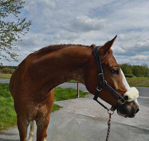 Zu Verkauf steht dieser schöne Wallach von 2020 Er ist ein Sohn aus dem Limbothello × Baldus Limbothello ein klasse Hengst der selbst in schweren Klassen erfolgreich ist. Interessant durch seine Farbgebung die er hier auch weitergeben konnte. Der gekörte Hengst konnte im Sprungwettbewerben Noten von 9,5 erreichen. Der zu verkauf stehende Wallach von einen Stockmaß von ca. 1,64 hat nicht nur ein tolles Aussehn vererbt bekommen, sondern auch einen guten Charakter und überzeugt mit seiner feinen angenehmen Rittigkeit. Im Umgang ist er super Brav egal ob mit Erwachsenen oder auch mit Kindern beim putzen und führen. Er ist dieses Jahr seine ersten Tuniere gestartet ( Springpferde A* und A**) und hat da auch durch seinen klaren Kopf überzeugt, dadurch konnte er sich direkt Plazieren. Er ist ein super umsteiger Pferd, ich könnte ihn mir aber auch in der Vielseitigkeit vorstellen. ✅️Er ist Schmiede und Verladefrom ✅️Gelände sicher ✅️Röntgen Bilder liegen von 2024 vor.