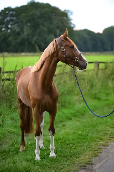 "Andi" unsere Barbiepferd - schöner könnte man ihn kaum malen. 5j. Wallach vom begehrten Andiamo Z aus einer For Pleasure Stute bester Güte. Absoluter Kumpeltyp, aufgrund seines Alters natürlich noch nichts für unsichere Reiter. Wunderschöne Gänge, sehr bequem zu sitzen und angenehm am Maul. Nach dem Anreiten nochmal auf Koppel gewesen und etwas grün, benötigt einen sicheren Reiter um die weitete Ausbildung zu gewährleisten, aktuell seine ersten Springpferde Prüfungen brav gelaufen. Verladen auch auf den LKW und Anhänger klappt, er kennt es in der Herde 24h draußen zu stehen, frisst und verträgt alles und ist insgesamt sehr unkompliziert. Andis Mutter Zara war bis M im Springen siegreich und wurde dann als Lehrpferd für eine junge Reiterin eingesetzt, sie hat zwei Vollgeschwister, die beide bis 1.45m erfolgreich laufen. Er ist extrem sitzbequem und springt vermögend und mit Übersicht, wir könnten ihn uns sehr gut (nicht zuletzte wegen der traumhaften Optik) als Mädchenpferd vorstellen. Guter TÜV. Kein zur Verfügung, keine Inzahlungnahme, Ratenzahlung etc. auf Anfrage bei ernstem Interesse. Der Qualität entsprechend. Direkt vom Züchter, Standort MV