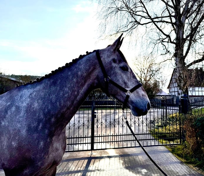 Descendiente muy interesante de los sementales de clase mundial Kannan y Cellestial. Tiene una generosa envergadura con una muy buena secuencia de salto y está dotado de una excelente manejabilidad y muy buenos aires básicos. En sus primeras competiciones ganó varios concursos de salto. A (1,00m) y se clasificó en la clase de salto L (1,15m). L (1,15m). Se comporta muy bien en el manejo diario y a campo traviesa. Es sin duda un caballo con un muy buen futuro deportivo por delante con el apoyo adecuado. Teléfono: +49(0)171/4605744