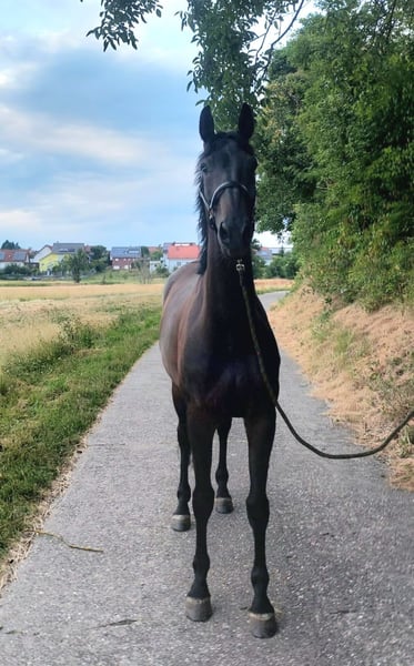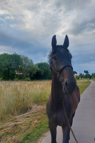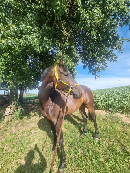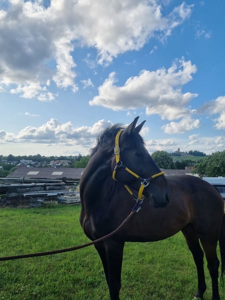 For sale is a charming Oldenburg gelding (born 2018) with a lot of personality and heart. This loving four-legged friend is looking for a new home where he will not only be supported but, above all, loved. In handling, he is exceptionally well-behaved and cuddly – he would love to crawl into your pocket and just wants to be "involved." He loves being close to people and is looking for a person who can provide him with security and trust. He has already competed in show jumping up to the L class and possesses both "go" and a nice jump. However, due to his sensitive nature, the pressure of performance was too much for him at a young age. Therefore, he is currently being sold as a leisure horse with the option for a sporty future – into loving, understanding hands. He is not a beginner or children's horse, as he needs an experienced handler who knows how to deal with his character. Those who give him time, security, and patience will receive a loyal horse that will stand by them through thick and thin. Further information: Gelding, Oldenburg, show jumping lineage Competed up to L class Height ~165-167cm Currently barefoot !!! NO health issues!!! He is not ridden solely due to a lack of time. Good for farrier and loading Used to box housing (at night), daytime turnout on pasture or paddock with free access Socially compatible – needs company of other horses Absolutely not malicious – strong character, willing, eager to learn We are looking for a "forever home" for him with people who see horses for what they are: living beings with feelings and quirks – sometimes full of energy, sometimes relaxed, sometimes playful, sometimes calm. If you are looking for perfection in high gloss and are bothered by little things like a hair mark or mosquito bite, please feel free to look elsewhere. Trial riding is possible by appointment and costs €40, which will of course be deducted from the purchase price. Serious inquiries only. If interested, we look forward to a MEANINGFUL message.