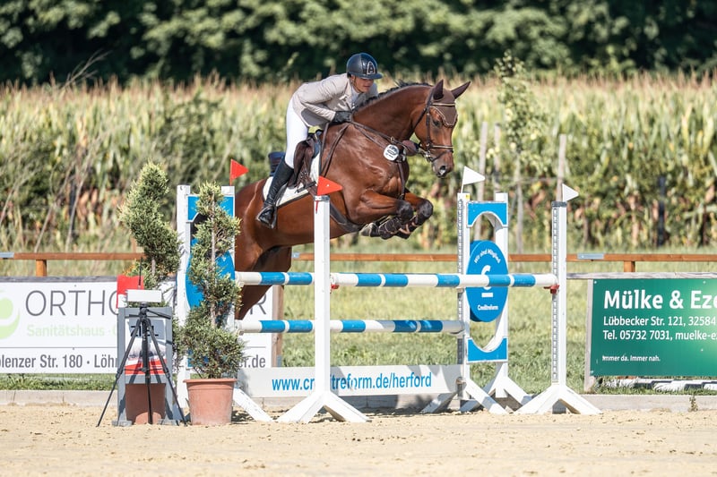 Schicker Springsportler mit allem Vermögen, großem Mut und Geschick im Parcours. Dieser 6j. Wallach kann sofort im Turniersport eingesetzt werden und 2026 altersgemäß in der Youngstertour an den Start gehen. Er verzeiht Reiterfehler und ist immer mit großem Mut und Motivation bei der Sache. Kein noch so buntes Hindernis, Wassergraben etc. bringt ihn aus dem Konzept. Absoluter Partner für den ambitionierten Amateur oder Jugendlichen! (1x Video mit 14j. Mädchen) Aktueller top Röntgen-Tüv aus 2025 vorhanden. Schmiede-, Verladefromm. Keine Angst vor anderen Pferden/Gegenverkehr auf dem Abreiteplatz! Gern WA, falls telefonisch nicht erreichbar. Um Holiday-Touristen zu vermeiden nehmen wir 50€ fürs Probieren.
