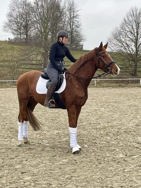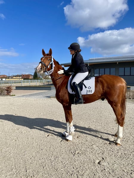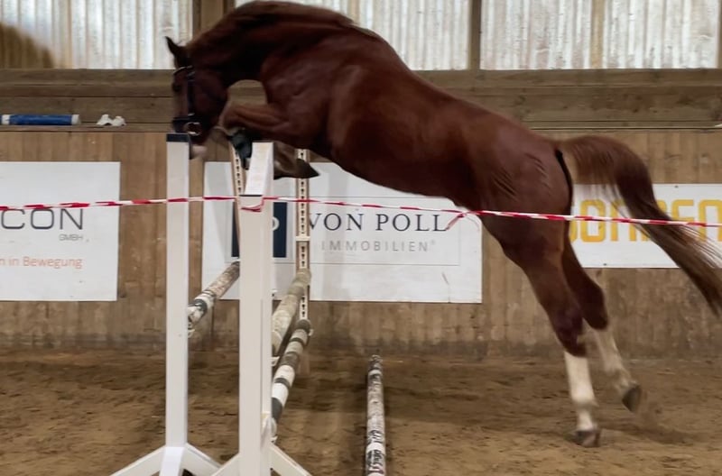 Verkaufe selbstbezogenen, eleganten Oldenburger Wallach – ideal für den Dressur- und Springsport. Dieser charmante Fuchs-Wallach wurde im Jahr 2022 geboren und beeindruckt durch sein freundliches Wesen sowie sein elegantes Erscheinungsbild. Mit einem Stockmaß von 169 cm bietet er die perfekte Größe für ambitionierte Reiterinnen und Reiter, die ihre Karriere vorantreiben möchten. Sein altersspezifischer Charakter, gepaart mit viel Potenzial in der Dressur, macht ihn zu einem vielversprechenden Partner für den Turniersport oder den gehobenen Freizeitreitsport. Der Oldenburger ist bekannt für seine gute Grundausbildung und seine angenehme Art im Umgang. Skylight ist professionell angeritten und bereits in Reitpferdeprüfungen und Dressurpferdeprüfungen mit hohen Noten erfolgreich platziert. Bei Interesse oder weiteren Fragen stehe ich Ihnen gerne zur Verfügung. Vereinbaren Sie einen Termin, um diesen vielversprechenden Nachwuchs selbst kennenzulernen!