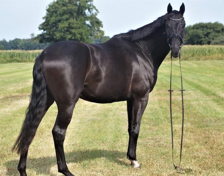 Large-framed, exceptionally beautiful black gelding seeking a 5-star home. Benni boasts an impressive size. He is currently at a solid L level. He learns quickly, so further training is definitely possible. He also enjoys rides in the terrain. A suitable horse for advanced leisure riding. Benni has a gentle temperament and is very human-oriented. A recent health certificate is available. He is farrier and loading friendly, familiar with group turnout, as well as open stable and box stall. Location: Lower Saxony near Oldenburg. Please contact exclusively via WhatsApp.