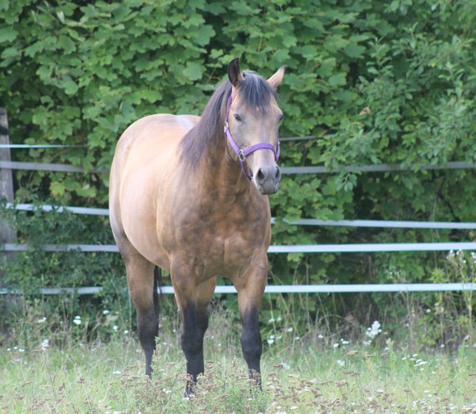 Onelittlestepforluna 2007 AQHA Buckskin Quarter Horse Hengst 5 Panel n/n - IMM. n/My - OLWS n/n - EJSCA n/n Ergebnisse Farbtest: E/e - A/a - N/Cr - nd2/nd2 von: WIMPYS LITTLE STEP LTE: $ 185,757 No introduction needed! NRHA $ 13 MILLION DOLLAR SIRE 2011 NRHA HALL OF FAME Aus der: MOONSTONE MEGA LTE: $53,431 Winner of the 2005 Wimpys Little Step Derby Non-Pro Offsprings Earnings more than 100.000 dollars Frühbucher Decktaxe Frischsamen (bis Ende Jänner 2026): €700.- Reguläre Decktaxe Frischsamen: €900.- Selbstverständlich gewähren wir eine Lebendfohlengarantie! Auch Fremdrassen sind herzlich willkommen! Weitere Infos sehr gerne telefonisch unter 0043 676 / 42 63 575 oder per Mail: mb-stallionservice@hotmail.com Zu unseren Deckhengsten zählen: Magic Bo Snapper (Palomino - Pleasure / All Around) Whatta Hit (Red Roan - Pleasure / Halter) Pocos Hollywood Ice (Champagne - Foundation) Lenas Blue Rain (Cremello - Reining / Foundation) Onelittlestepforluna (Buckskin - Reining) Whattan Exciting Hit (Chestnut -Pleasure) Hot Hits Only (Red Roan Overo - Pleasure / All Around)