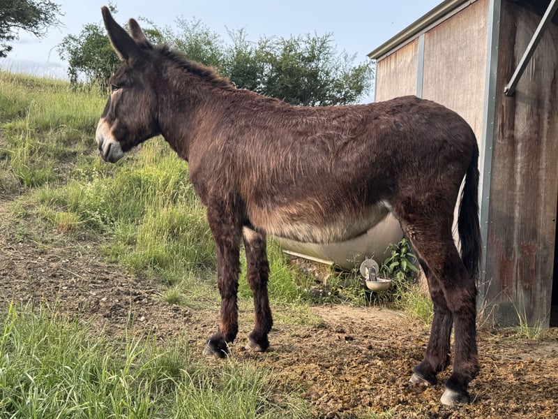 Isabella Loreley is an AFRAC (Assiciació Foment Raca Catalana) registered broodmare with excellent conformation and a height of 155 cm. Her conformation and back allow her to carry a light rider (up to approx. 50 kg). Isabella also has the necessary temperament for this. But she is also suitable as a strong-nerved carrier and loyal companion on hikes, she learns quickly and willingly and could attract attention as a show animal with a great eye-catching effect. She is now almost 6 years old and therefore fully grown. She was born and raised by us. Please refer to our homepage for our keeping conditions: www.esel-loreley.de She is halter-trained, can be handled everywhere, likes to have her hooves trimmed and groomed, is cuddly and people-oriented. She loves to learn and is curious and open-minded. She would like a place with lots of freedom, coupled with exciting challenges. Donkey companionship and donkey experience are essential. We are almost always available by telephone for further questions.