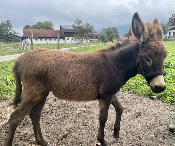 Unser wunderschönes Eselstutfohlen Soffi such ab Februar ein neues Zuhause! Sie ist, wie ihre Eltern (beide ca. 90-100cm) eher kleinbleibend. Unsere Soffi (geb. 15.05.2025) ist total verschmust und menschenbezogen. Sie kennt das Halfter und auch schon den Hufschmied. Bei Interesse oder für weitere Informationen freuen wir uns auf Ihre Nachricht!