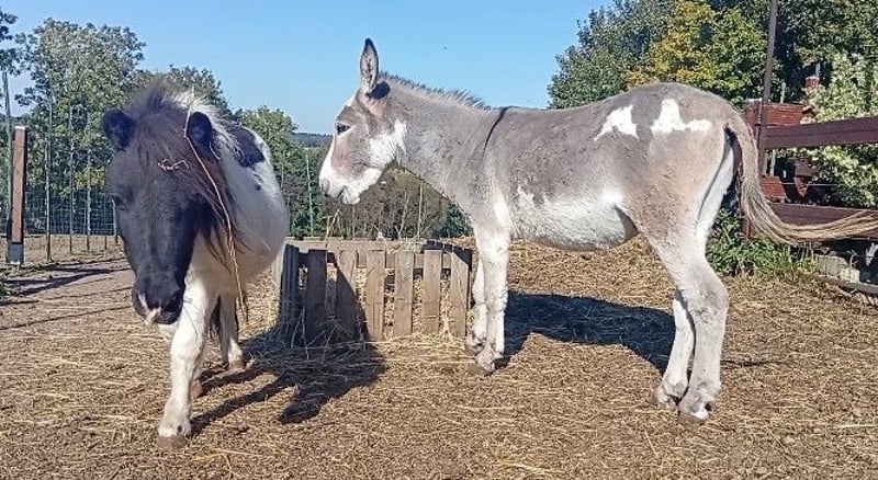 Eselhengst RAMON 3 Jahre jung, Hengst der in diesem Jahr Vater von bildhübschen Fohlen geworden ist, Esel- und Mulifohlen, die Stuten sind Minishettys und Shettys sucht nun ein liebevolles Zuhause, wo er betüddelt wird und seine Kraulreinheiten täglich bekommt. Ramon ist sehr auf den Menschen bezogen, lieb, tritt und beißt nicht. Ich muss ihn abgeben, da ich hier meine Mulihengste, einer davon ist und bleibt Mini Mini behalte und der Größenunterschied ist zu groß, wenn die alle in die Pubertät kommen. Ramon steht mit seinem Kumpel einem Shettyhengst, auch 3 Jahre jung zusammen und ggf könnten auch beide zusammen verkauft werden, da sie sich seit Fohlenalter kennen, es besteht aber auch die Option daß Ramon mit einer grauen Eselin, gemeinsam auszieht, die auch 3 ist und dieses Jahr ihr erstes Fohlen bekommen hat, was schon abgesetzt ist. Wir verkleinern hier unseren Bestand etwas, deshalb unterschiedliche Optionen..... Ramon und Shettyhengst Ronnieboy, der schwarz weiße Schecke - Preis für beide zusammen 2500 Euro Ramon mit Eselin Ronja - Preis für beide zusammen 2850 Euro Die Esel und Shettys folgen einem ohne Halfter sind alle superlieb. Bei Interesse beantworte ich nur Anfragen, wo dein Name steht und ich möchte vorab etwas von dem vlt neuen Zuhause erfahren, es sind für mich liebe Tierseelen, wo ich schon wissen möchte, ob das Zuhause liebevoll und passend ist. Liebe Grüße Melanie