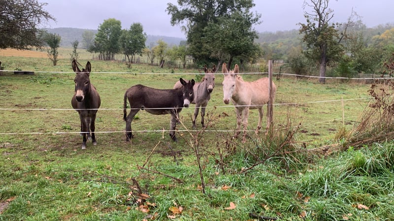 Billy is still looking for his forever home. He is a lovable donkey stallion registered with the Stadl Paura Breeding Association. Born in 2018, he is very gentle, was part of a group of four geldings, and is highly social, curious, and open to humans. He has an approximate height of 1.20 meters (about 12 hands) and has previously been kept in a robust management system as part of a grazing project, which has now been discontinued. Billy is halter-trained and loves cuddling. He has been dewormed, vaccinated, and his hooves have been recently trimmed. If you're interested or have further questions, please feel free to contact us.
