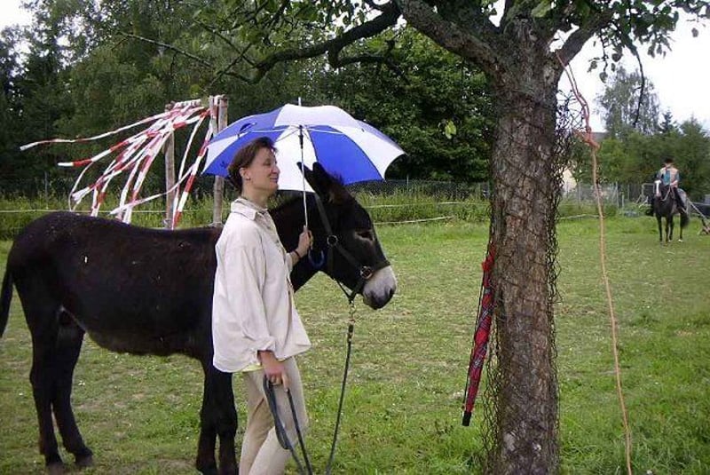 in eigenes Maultier heranziehen? Wir helfen tatkräftig dazu! Mit einer guten Pferdestute kann das leicht gelingen! Von Großesel Fridolin gibt es tiefgefrorenes Hengstsperma, mit EU-Status, zur Produktion von Gebrauchskreuzungen (Nichtzuchttieren). Die Abgabe des TGs erfolgt über eine zugelassene Besamungsstation (an der Uni Gießen). Gerne beraten wir hierzu, aus langjährigen eigenen Erfahrungen mit Großmaultieren, auch bezüglich der Fellfarben Vererbung und weiterer Genmerkmale. Vorteil - kein Import von Tieren unbekannter Herkunft und Aufzucht, Ausbildung, Behandlung, Zuchtziele ... "Ich bin nun schon über 20 Jahre alt, war immer gesund. Mein Charakter wird allseits gelobt. Ich wurde allen Aufgaben und Anforderungen gerecht. Meine Kinder machen Freude ." Das ist der Vorteil bei der Auswahl eines älteren Hengstes gegenüber einem erst 3 oder 5 jährigen im Vergleich - er hat sich bereits bewährt. Der Hengsthalter kümmert sich allzeit um die besonderen Aufgaben dahinter. Das ist kein "Geschäft". DNA-Karte und Gentests liegen vor. Der Züchter sollte ebenfalls im Lebens bereits bewährte Stuten zur Zucht auswählen, um die Stabilisierung und Verbesserung zu erreichen, die den Zuchtgedanken an sich begründen. Nicht zu spät, aber eben auch nicht zu früh We do speak English, don't hesitate to contact us! Foto: Großesel Fridolin mit zwei seiner Nachkommen (2008+10) sowie deren Mutterstute. ©