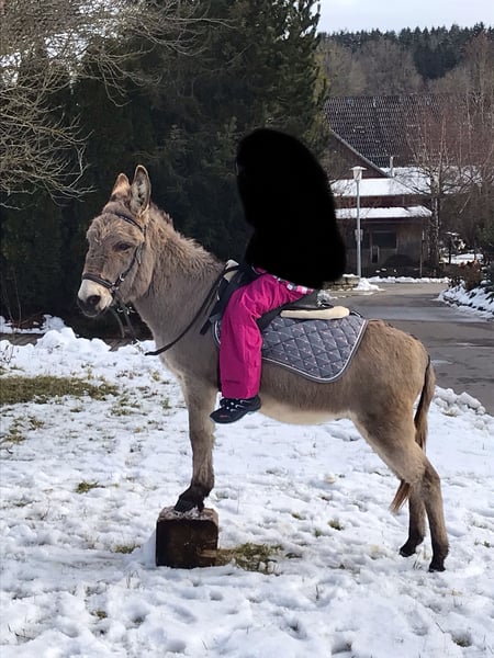Wir suchen für unsere zwei Esel Filou und Sancho ein neues artgerecht und liebevolles Zuhause. Filou ( der helle) ist aktuell 17 Jahre Sancho (der dunkle) ist 25 Jahre. Beide sind absolut kinderfreundlich und superlieb im Umgang. Mit ihnen können sowohl Wanderungen gemacht werden, als auch von Kindern geritten werden. Sie sind Schmiedefromm und absolut unkompliziert im Täglichen Umgang. Wir wünschen uns für die beiden ein artgerchtes Zuhause, sie werden nur gemeinsam in allerbeste Hände abgegeben. Preis bezieht sich je Esel, es kann sämtliches Zubehör mit erworben werden. Bei Fragen bitte melden.