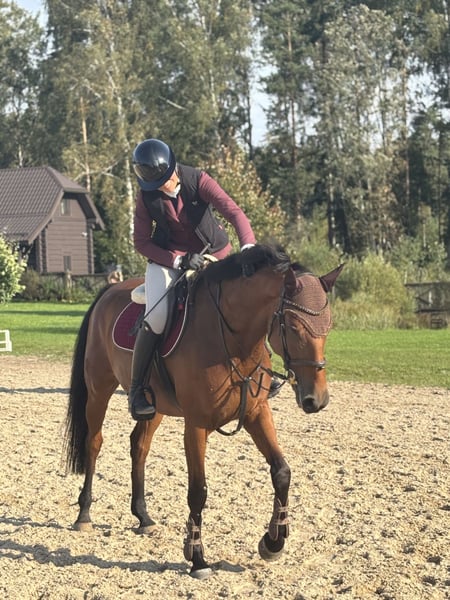 Katania is a 2020 born homebred mare that is 165 cm height. She had a foal so not been rushed into sports. She has competition experience at small classes. With a right work she can drvelop into a nice jumping horse. Though she has abilities to jumo she is easy enough for amateurs or kids. Totally safe, very reliable. Perfect for hacking and hobby riding too. Super sweet personality and very easy in all daily activities. Clear xrays, no defects or bad habits. Price 10 000 eu + VAT Located in Lithuania, helping to organize paperwork and transport.