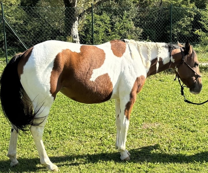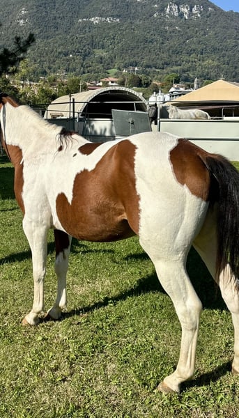 💖NIKA💖 Splendide pouliche paint de 2 ans et demi, caractère exceptionnel et d'une bonté unique. SAINE, elle est l'une des dernières filles de Gamblin Gale. Elle a des documents italiens et est en règle avec le test de Coggins. Taille d'1,43 m avec une marge de croissance. Elle travaille déjà bien à la longe et n'a pas de problème à monter dans le VAN. NOUS CHERCHONS UNE PERSONNE QUI L'AIME FOLLEMENT. PAS DE COMMERÇANTS. Pour des informations, +39 3917059140