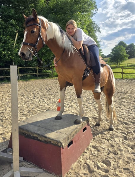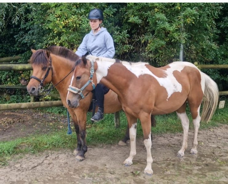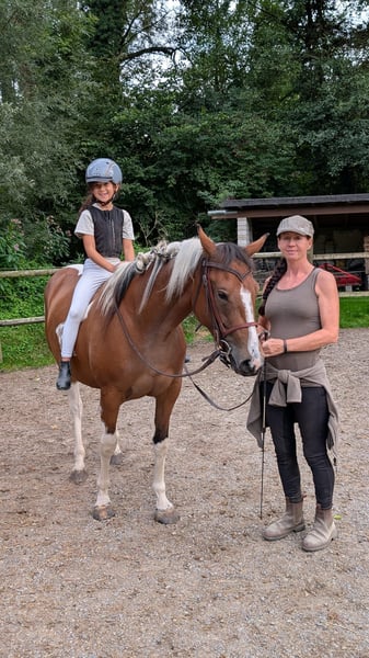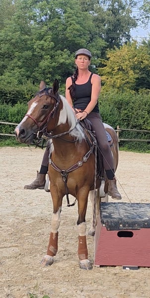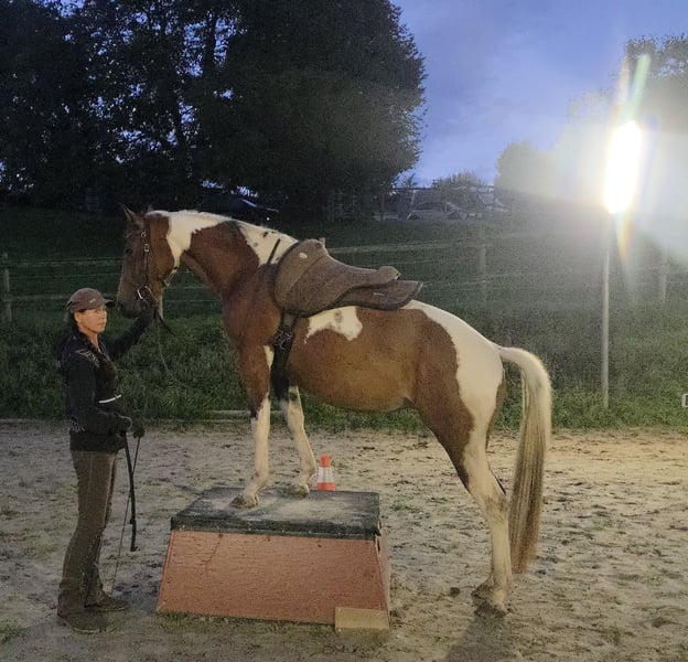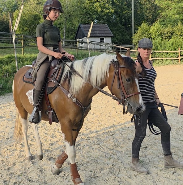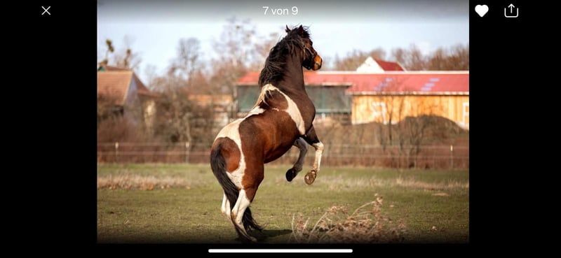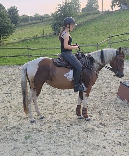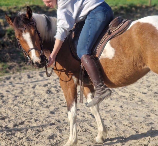 Im August 3 jährige bildhübsche Paint Horse Stute mit Equidenpass. Endmaß ca.150-155cm. Eltern beides Paint Horses Vater: Pretty Cowboycadillac (siehe Fotos und Abstammung) Mutter: Caroline ( siehe Fotos , ohne Abstammungsnachweis) Liebe und menschenbezogene, coole Jungstute, wöchst im Offenstall auf, halfterführig, kennt Putzen, anbinden und Mitlaufen als Handpferd, sowie Longieren und etwas Bodenarbeit, rückwärts weichen, seitwärts übertreten, jetzt altersentsprechend schonend angeritten, Lässt sich von Jugendlichen und Kindern reiten, ohne Sattel, mit Reitpad und Westernsattel, Videos auf Anfrage, Zähne wurden aktuell gemacht (brav ohne Sedierung), geimpft und entwurmt, barhuf. Ein tolles und hübsches Pferd zum Weiterausbilden. Denkbar wäre auch eine weitere Ausbildung gegen Bezahlung. Bein ernsthaftem Interesse kann sie gern in der Nähe von Mettmann besichtigt und kurz Probegeritten werden (30€ werde ich hierfür berechnen). Suche einen wirklich passendes Zuhause für diese süße Maus. Sie verspricht eine anhängliche und zuverlässige Freundin zu werden. kein Händler! Der Preis ist verhandelbar, sofern alles passt. Die Fotos sind nicht alle aktuell wie man sieht, es sind Fohlenbilder dabei und zeigt sie wo sie noch jünger war. Bei Fragen einfach schreiben...