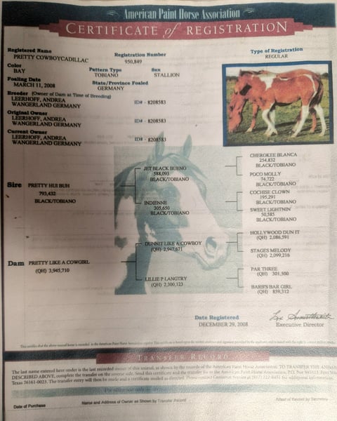 In August 2 year old Paint Horse mare without papers with equine passport. Final size approx. 150-155cm. Parents both Paint Horses Sire: Pretty Cowboycadillac (see photos and pedigree) Dam: Caroline (see photos) Lovely and people-oriented, cool young mare, grew up in an open stable, halter trained, knows how to be tied up and walk along as a hand horse, as well as short lunging and some ground work, teeth have been done, vaccinated and dewormed. A great and pretty horse to train yourself. If you are seriously interested, she can be viewed near Mettmann. If you have any questions just write...