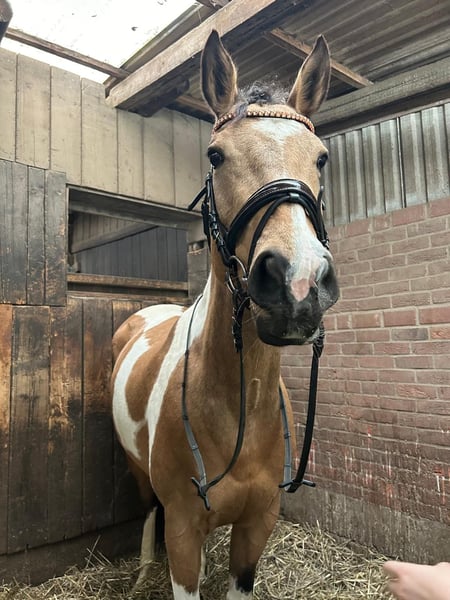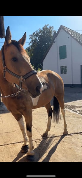 Te koop: Liefvolle Paint Horse merrie Ik bied mijn prachtige Paint Horse merrie te koop aan, geboren in 2017. Ze valt op door haar indrukwekkende Tobiano-kleurpatroon, dat alle kleuren combineert en haar tot een echte blikvanger maakt. Met een stokmaat van 1,65 m is ze perfect in verhouding en veelzijdig inzetbaar. Haar passie ligt bij cavaletti en ontspannen buitenritten, maar ze kan ook af en toe flink gas geven. Ze is ideaal voor recreatief gebruik en geschikt voor zowel rustige ritten als meer uitdagende tochten. Ze voelt zich thuis in zowel dressuur- als westernzadel. Ze beschikt over de basisvaardigheden voor beide disciplines, omdat ze niet professioneel is gereden. Dit hebben we op een zachte en rustige manier gedaan toen ze 5 jaar was, en sindsdien wordt ze slechts sporadisch bereden. De merrie is nieuwsgierig en ondeugend, maar altijd vriendelijk, mensgericht en goed in de omgang. Wandelen en buitenritten doet ze braaf mee. Binnen en op de piste wil ze graag gemotiveerd worden, bijvoorbeeld met stangen en afwisselende oefeningen. Zonder opdracht in cirkels lopen vindt ze saai. Ideaal zou ik vinden dat ze een eigenaar krijgt die de tijd voor haar kan nemen en haar in een open stal houdt of zo dat ze overdag buiten kan staan. Boxenhuisvesting is geen optie. Ze is dol op kinderen, maar ik wil haar niet als beginnerspaard verkopen. De merrie krijgt niet regelmatig training en wordt vanwege tijdgebrek slechts sporadisch bereden. Platz prioriteit boven prijs. Geld speelt geen rol. Ze verdient het beste thuis. Bij interesse of voor meer informatie sta ik graag voor u klaar. Een persoonlijk kennismakingsgesprek is altijd mogelijk.