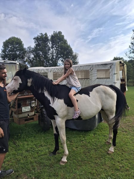 Dobrze jeźdzony i spokojny podczas krycia na ręku i na łące. Na sprzedaż lub do dzierżawy jako ogier.