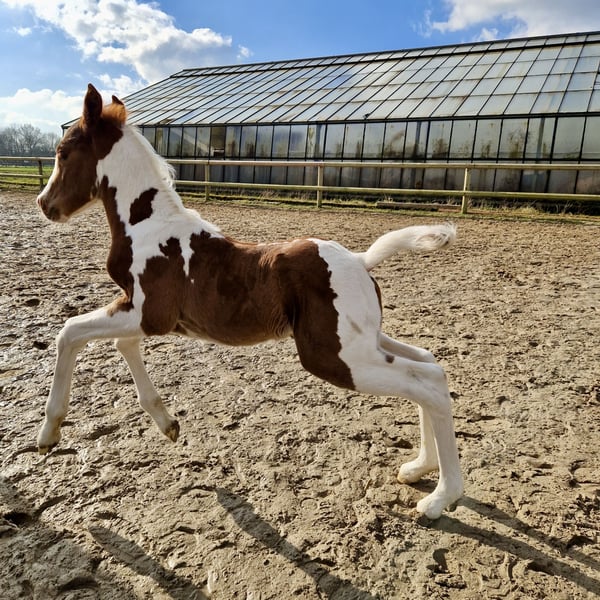🔹 PHCG awarded & enrolled in the EWU Young Horse Program For sale is a promising and typy Paint Horse colt with top genetics for Reining, Ranch & Allround. “Spark,” born on 07.02.2025, showcases a clearly marked Tobiano coat pattern, harmonious conformation, and loose, powerful movements. 🔹 Pedigree: • Sire: Hollys Electric Spark – successful Reining stallion (NRHA), son of Jacs Electric Spark out of Shining Spark • Dam: SH Leoslucky Girl – foundation-oriented mare with correct conformation and athletic temperament ➡️ This pairing combines proven Reining performance lines with a lot of substance & charisma – ideal for sport or breeding. 🔹 What Spark offers: • PHCG awarded at the foal show 2025 • Enrolled in the EWU Young Horse Program • Well-mannered in handling: regularly halter-trained, good with hoof handling, trailer loading is no problem • Raised in a herd environment, familiar with pasture, paddock box, human contact, cars, tractors Spark has already taken his first outings in the area and shows himself to be fearless. 📍 Location: Dormagen - near Cologne / Düsseldorf 📅 Availability: from October 2025 📩 More photos or videos available upon request 📄 APHA papers & PHCG registration available Geissler Performance Horses “Bred with Passion – Raised for Purpose”