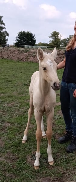 This exceptional Palomino filly born in 2024 impresses with her presence, clear-mindedness, and harmonious overall appearance. With an expected final height of approximately 16.1 hh, she offers ideal prerequisites for versatile use. She is very interesting for breeding, ambitious leisure riders, or as a family horse. Already awarded as a foal, Lana showed her potential early on. Her harmonious gait underlines her quality and makes her a particularly promising young prospect. With roots in dressage and Western riding, she is suitable for a variety of disciplines, and we can easily imagine Lana excelling in both. As a daughter of a Curly Horse mare, this young horse combines the typical strengths of her breed: extremely human-oriented, stress-resistant, and eager to learn. Her sire, the renowned performance stallion Sölrings Cuvée, brings excellent lineage, a balanced temperament, and high social competence. He also lives in a herd, which is unusual for a stallion, and demonstrates his social strength daily. We are a small breeder who raises our animals with a lot of heart and understanding. Lana grew up in a diverse herd environment – with her mother, aunts, other young horses, and until recently, our breeding stallion. This early socialization has fostered her confident behavior in groups, and she consistently appears friendly, secure, and respectful within her herd. Her nature is loyal and faithful – like a dog – and she always strives to please her human. This young horse has everything one could wish for in a future reliable partner: open to new experiences, clear-minded, friendly, brave, gentle, and honest. Well-trained for her age, halter-broken, shoe- and loading-trainable, Lana impresses with her high human affinity. Thanks to her excellent pedigree, balanced nature, and soft movements, we expect her to have very good riding qualities and to behave reliably and pleasantly under saddle. Lana combines top-level exterior, interior qualities, harmonious movement, social competence, stress resistance, and versatility – a young horse with intelligence, heart, and potential for breeding, leisure riding, or ambitious riders who value character, loyalty, and versatility.