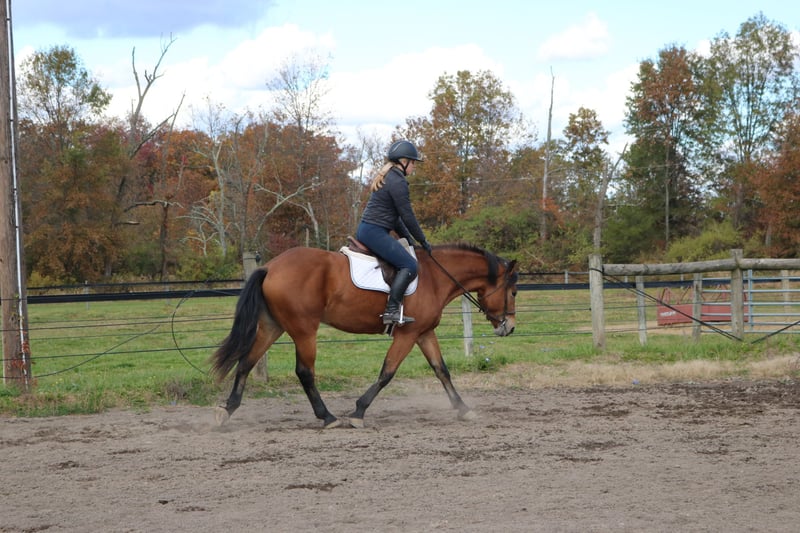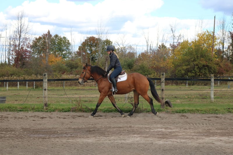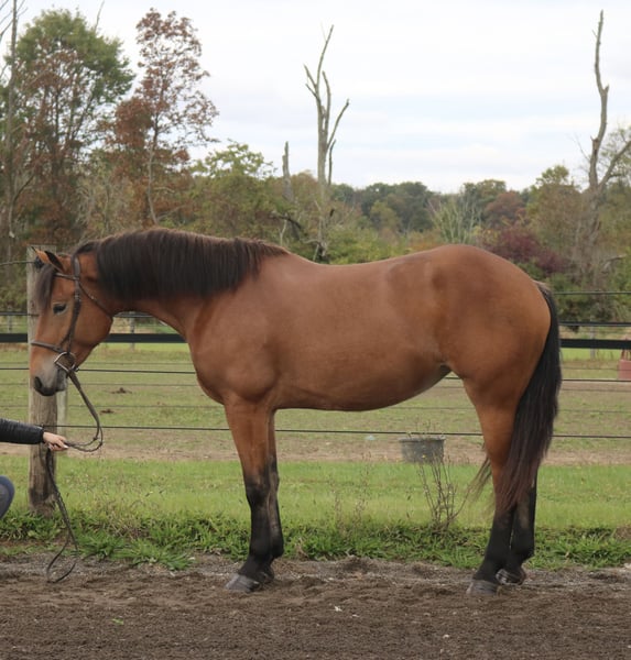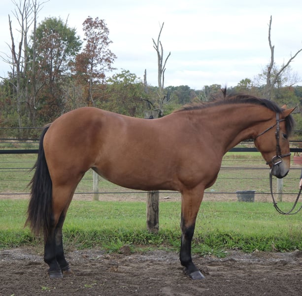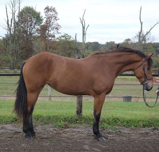 🎄𝐓𝐇𝐄 𝑯𝒐𝒍𝒊𝒅𝒂𝒚 𝐂𝐋𝐀𝐒𝐒𝐈𝐂🎄 Happening now thru MONDAY | DECEMBER 15th - Available EXCLUSIVELY on HorseBid's website! For more details and to register visit: www.Horsebid.com CONSIGNOR CONTACT: Heather Ritz - Imagine Equestrian 610-247-5671 LOCATION: Perkasie, PA BREED: Percheron X REGISTERED: No COLOR: Bay HEIGHT: 16 AGE: 4 GENDER: Mare Saffron 2021 Percheron X mare. Saffron stands at 16 hands with a stocky build. She is sound with no known injuries or maintenance. She is up to date. She is currently turned out in a mixed herd and gets along well with others. She is not mareish at all. Saffron doesn’t crib, bite, kick, or weave. In the barn, Saffron is a sweet loving girl with a kind eye. She loves attention and likes to connect with people. She stands tied, clips, bathes, loads, and is good for the vet/farrier. Saffron is easy to catch and hauls well. In the arena, Saffron rides both english and western. She stands to be mounted from the ground or by a block. Saffron walk trot canters both directions and picks up both leads. She is started over fences and is a natural. She will jump filler, cross country fences, and is honest to a jump. Saffron is very willing and safe. Saffron has experience out on the trails both alone and in a group. She has been exposed to dogs, bridges, water, and traffic. Saffron has a solid foundation and is ready to go in any direction. No buck, rear, bolt, spook