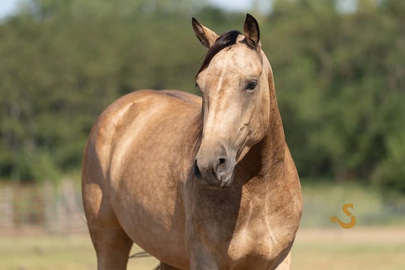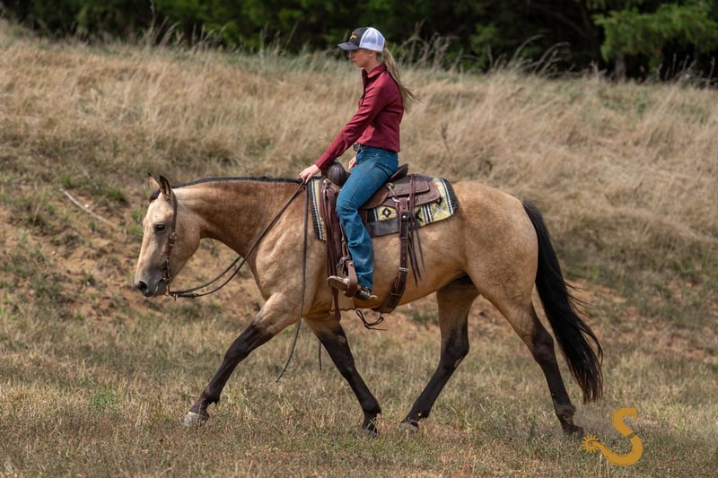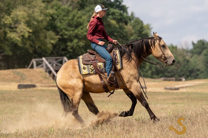 🍁𝒕𝒉𝒆 𝐅𝐀𝐋𝐋 𝑺𝒑𝒆𝒄𝒕𝒂𝒄𝒖𝒍𝒂𝒓🍁 Happening now thru MONDAY | SEPTEMBER 22nd - Available EXCLUSIVELY on HorseBid's website! For more details and to register visit: www.Horsebid.com CONSIGNOR CONTACT: Broken S Equine Kieran 908-645-2127 or Beau 573-303-4087 LOCATION: Bogard, MO BREED: Percheron x Quarter Horse REGISTERED: No REGISTERED NAME: Nala COLOR: Buckskin HEIGHT: 15.3 AGE: 5 GENDER: Mare Nala is a 5 year old Quarter Horse x Percheron mare standing 15.3 hands high. Nala is the type of horse that turns you into a mare lover. She is up for any adventure, and sensible enough for any job. She has had a versatile upbringing, setting her up for success in anything you choose to do with her. She is sporty and brave on the cross country field, sure footed on the trails, well broke under western tack, and a fantastic partner in the dressage arena. Nala is no drama, smart as a whip, and just loves having a relationship with her person. Some folks say they aren't mare people, but when you get to form a bond with a horse like Nala, you form a true partnership that will have you feeling unstoppable together. In the ring, Nala will ride both English and western. She has great lateral work, easy transitions, picks up both leads, and is schooling flying changes. She will ride on a loose rein, or round in the bridle, and listens well to leg, seat, and voice cues. Under western tack, Nala has a nice neck rein, spin, and big stop. She has the foundation that has set her up to easily be able to do dressage, western dressage, working equitation, and more! Over fences, Nala has lots of scope! She has been introduced to various fences on the cross country field and in hunt country. She will jump down banks, over ditches, coupes, walls, logs, and more! Eventing dreams? Nala is your girl! On the trails, Nala will ride alone or in a group. She is used to hopping in the trailer and going new places. She crosses water, logs, bridges and more. She's gone riding in town, and is safe in traffic and by busy roads. She's a master on the obstacle course too! In the barn, you would have no idea Nala is a mare. She is sweet and gentle, and absolutely drama free. She has great ground manners, and stands politely for all the usual tasks. She is happy living inside or out, and gets along in turnout with mares and geldings. ⚫️Nala is an easy keeper that requires no maintenance. We have a recent, clean vet check on file. ⚫️Our program aims to train and produce top quality horses and ponies for all disciplines and experience levels. Check out our website for testimonials! ⚫️We are located in Bogard, MO. We can help you arrange shipping anywhere! ⚫️For more information about Nala, or any of our other horses call or text us. Kieran 908-645-2127 Beau 573-303-4087