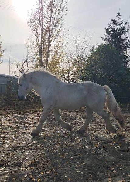 Hello, I am Biky. I am a very gentle 14-year-old Percheron stallion and a big cuddly bear. I have a wonderful life here in France: I am always outside with my buddy, with hay available at all times and a shelter when it’s too damp to sleep outside or when it’s too hot. I’m just a little bored because my owner is often away for work. If I could find a place as great as here – absolutely NO box! – and someone who has time to spend with me, I might consider moving. I love going on rides, I enjoy free jumping, and I am well-trained in dressage. I also help out by dragging the arena harrow, and I adore cuddling. I easily get into the trailer and stay very calm. My owner says I am a wonderful boy. If you’d like to meet me, feel free to give her a call. I look forward to your visit!