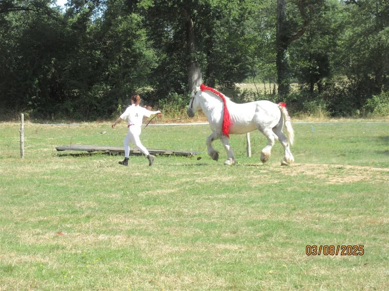 vend étalon percheron approuvé de 8 ans petit taille pour cause de consanguinité , cheval débourré monté et attelé en simple et en paire ( sans œillère) cheval calme qui respecte les clôtures , vie au près avec d' autre étalon l hiver ,et en monte naturelle au printemps très gentil avec les poulains .cheval à jour de ces vaccin grippe tétanos , donne les pieds, parage à l anglaise ( à déjà été ferre des antérieurs) ,reste à l'attache seul , monte très bien en camion, facile à manipulé