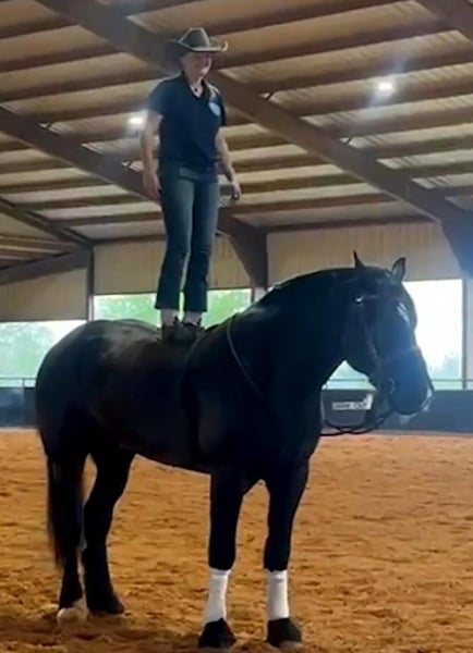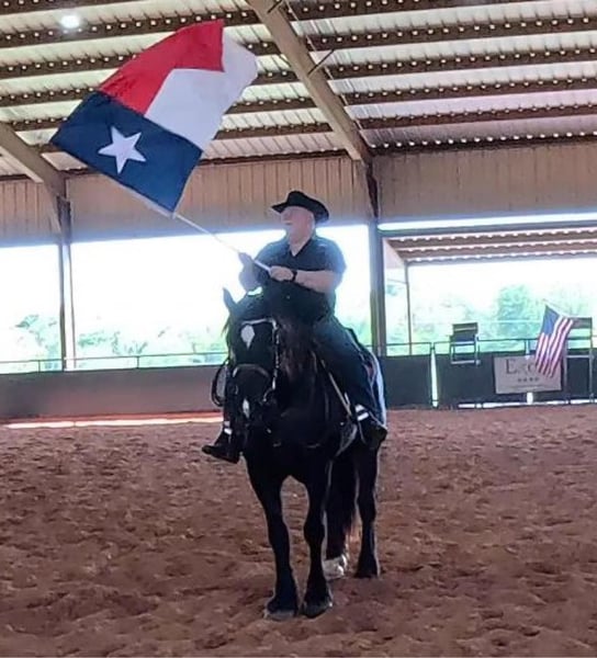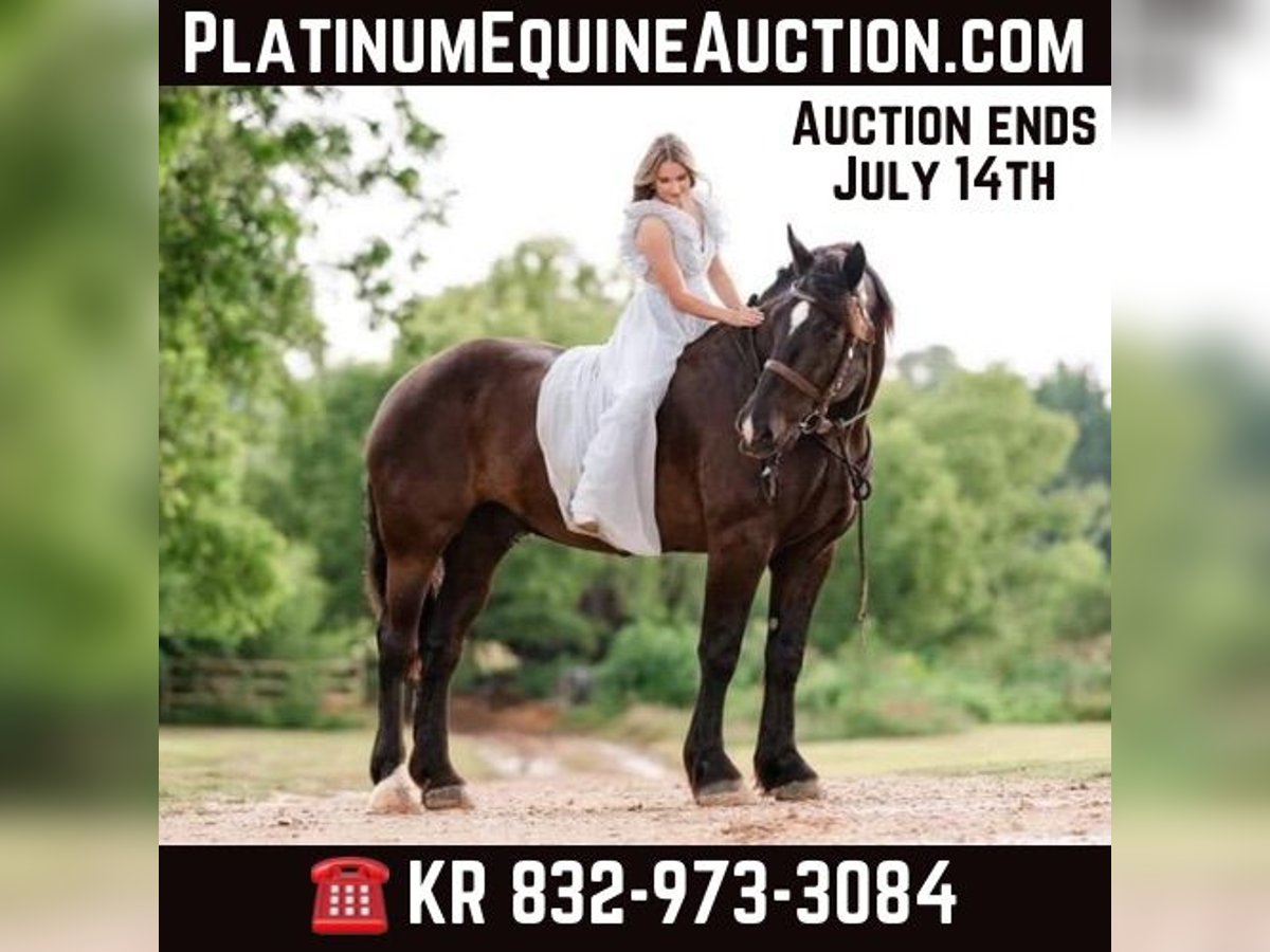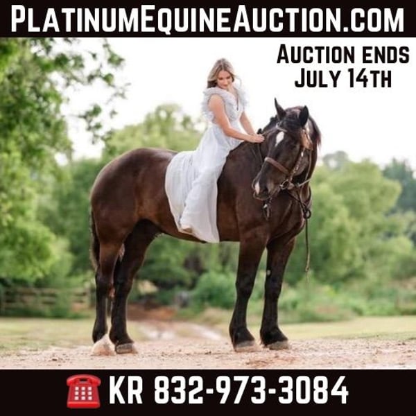 ONLINE AUCTION Place your bids at www.PlatinumEquineAuction.com Starting Bid $3500 Auction ends July 14th, 2024 Need a new saddle? Check out White Rock Saddles on our website or Facebook! Levi is a 14 yr old, big (18 hands), black, beautiful, registered Percheron gelding. The proverbial gentle giant although his ancestors were bred to be French War Horses caring knights into battle! I have 6 videos show it all; easy to catch, loves attention, comes when called, easy to bath, easy to clip, easy to saddle, easy to mount, stands for mounting, stands for shoeing, no stocks needed, beautiful mover that gets his leads, more whoa than go, rides and drives, great babysitter to the yearlings, not spooky, rope, whip, tarp, slicker, children riding and more, just request a link to them. My granddaughter took her first riding lesson on him…what a fun family horse! Up to date on everything. I’m a big guy and I bought him to haul all over the country on trail rides but life and medical issues got in the way… My loss is your gain! He is fun to lope around and he will get you a lot of attention everywhere you go! Send me a message to get all videos, you don’t want to miss this one. Contact KR Smith 832-973-3084 with any questions. Located in Montgomery, TX. ONLINE AUCTION Place your bids at www.PlatinumEquineAuction.com Starting Bid $3500 Auction ends July 14th, 2024 Need a new saddle? Check out White Rock Saddles on our website or Facebook!