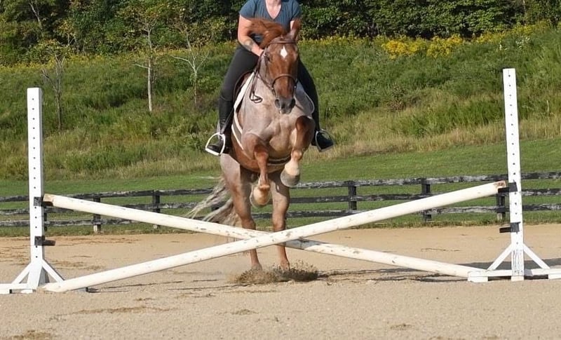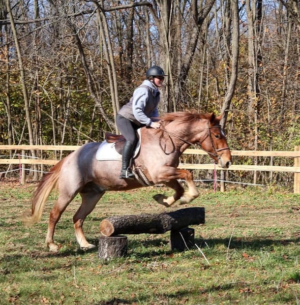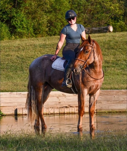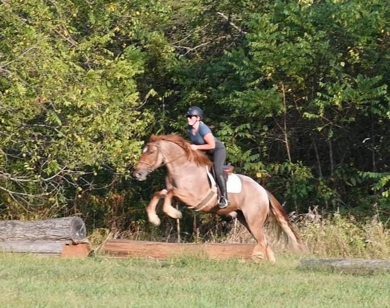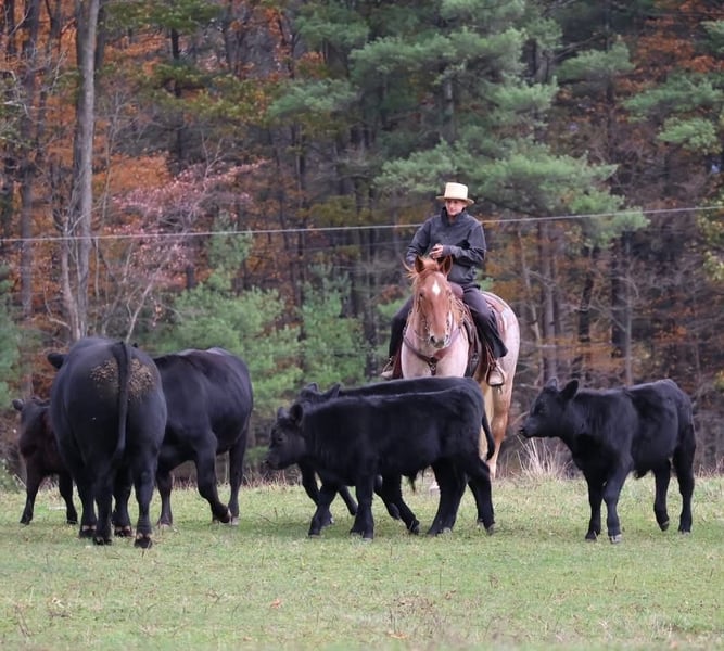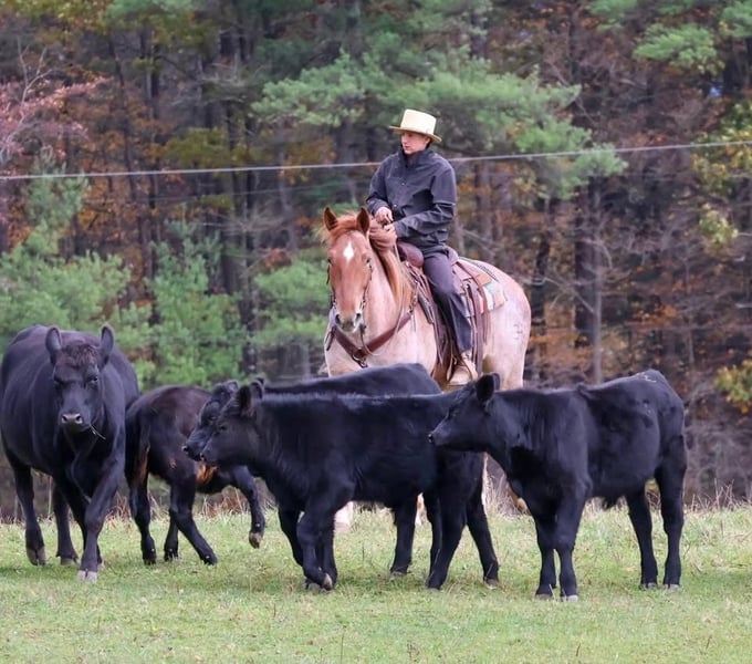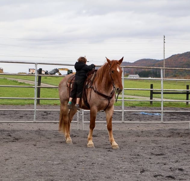 ⚜️ 𝓗𝓮𝓻𝓲𝓽𝓪𝓰𝓮 𝐖𝐢𝐧𝐭𝐞𝐫 𝓒𝓵𝓪𝓼𝓼𝓲𝓬⚜️ Happening now thru MONDAY | DECEMBER 29th - Available EXCLUSIVELY on HorseBid's website! For more details and to register visit: www.Horsebid.com CONSIGNOR CONTACT: Circle P Performance Horses LLC 717-688-9479 LOCATION: Littlestown, PA BREED: Percheron Quarter Horse Cross REGISTERED: No COLOR: Red Roan HEIGHT: 16.1 AGE: 4 GENDER: Gelding ✨ 𝐒𝐚𝐟𝐞, 𝐒𝐭𝐮𝐧𝐧𝐢𝐧𝐠 & 𝐓𝐚𝐥𝐞𝐧𝐭𝐞𝐝! ✨ “BamBam” is a breathtaking 4 year old, 16.1 hand gelding. BamBam has had a phenomenal upbringing, he rides English and western, works around the ranch, hacks out on the trails and he’s started in the cross country field! He puts his heart in every job and strives to give his rider 110%. The opportunities are limitless for this gelding! Under saddle, BamBam is smooth, balanced and correct. He picks up both leads, has comfortable transitions and will take a jump with ease! He’s brave over fences and has the scope to jump higher! Bam has the confirmation, brains and versatility to excel in cross country, fox hunting, dressage, equitation etc! He is not the type of horse that needs to be in a program. Absolutely no prep - he can sit for a month and go straight to work! I have let the kids jump on and play with him in the arena - he is so patient, forgiving, and quiet minded. He would be perfect for a youth rider or adult amature working with a trainer to gain confidence and grow to the next level! He’s a saint! If English isn’t your thing, he also rides western and will put in a honest days work on the ranch! Bam has been used to check fences, gather and move cattle and works good alongside dogs! On the trails, BamBam is as safe, reliable and confident as they come! He will cross anything you put in front of him - bridges, water, deadfall, railroad tracks, you name it! He has been to town and is traffic safe! He’s acclimated to the craziness of daily life around the farm and doesn’t mind loud noises, trucks, trailers, equiptment, ATVs/SXSs, bicycles, scooters, tarps, flags, balls, etc. He is use to kids and dogs running around the barn and pays no mind. At home, BamBam is everyone’s favorite! He is an easy keeper with no maintenance or quirks. He will stand all day in the barn to be groomed and loved on. He is good for all things - bathing, clipping, tacking up, farrier, vet, dentist, loading, hauling and he is always the same horse off farm as he is at home! I normally keep him shod when in full work, but with coming into winter, Bam is currently barefoot. He’s got big, strong, hardy feet and gets nothing but compliments from my farrier! He is use to being turned out in a mixed herd with other geldings and mares, mules and minis - he gets along with everyone! I never have to worry about catching him - he can be at the very far end of the field and if he hears me whistle he comes galloping to the gate! BamBam has the absolute best personality. He is so incredibly sweet and gentle, and he loves spending time with his people. He never misses an opportunity for attention as he’s always right there in your pocket! He has an “old soul” Yellow Lab demeanor that is priceless in my mind. BamBam has captured my heart and I want to see him land in the BEST home! He is a true, honest, once in a lifetime gelding. Please feel free to reach out with any questions or to schedule a visit to come meet him!
