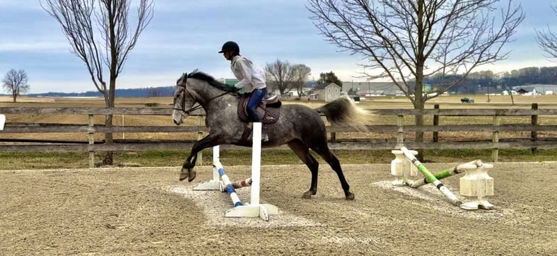 𝐉𝐀𝐍𝐔𝐀𝐑𝐘 ⭐️𝑨𝒍𝒍 𝑺𝒕𝒂𝒓 𝑳𝒊𝒏𝒆𝒖𝒑⭐️ Happening now thru MONDAY | JANUARY 26th - Available EXCLUSIVELY on HorseBid's website! For more details and to register visit: www.Horsebid.com CONSIGNOR CONTACT: CM Farms 717-875-2061 LOCATION: Gap, PA BREED: Perch/QH REGISTERED: No REGISTERED NAME: Flint COLOR: Grey HEIGHT: 15.3-16 AGE: 5 GENDER: Gelding Meet Flint! This gelding is a 5 year old, 15.3-16hh, Perch/QHx, gelding. He is the most gorgeous steel grey color, with a lighter athletic build that’s put together correct. He rides Western, English and Bareback, he’s broke to drive, and he even lays down on command! He is sensible, safe, and incredibly fun to have in the barn. On the ground, Flint is personable and so sweet. He has excellent ground manners, and will stand to groom, tack up, bathe or simply to fuss over. He’s a people person with a quiet personality and a gentle way about him. He has done lots of ground work, and his manners show it! He loads in and out of the trailer quietly, he acts the same off property, and he’s behaved in his stall. He gets along with all the other horses, and loves to play with the other young geldings. This gelding is easy to have in the barn, and easy to work with. Under saddle, Flint has the basics down in the ring. He walk trot and canters both ways, and he’s learning balance and to use himself properly. He moves off leg, and he is extremely light and easy through the hand. He has great brakes just off your seat or a “whoa”. He’s been a rewarding one to bring along, one you can really see the progress as it’s happening! He’s smart, a quick learner, and always willing to please. He has learned to be adjustable in the walk and trot, and he’s learning quickly at the canter. He’s not the spooky type, or one to have a big reaction to anything. He’s happy to chill and mosey around on a loose rein, or he’ll turn on his good work ethic- and he really seems to enjoy his job. He’s going to make someone an incredible horse, and we could see him excelling in any direction! On the trail Flint is a steady packer. He’s down to lead or follow, and he has a forward thinking walk with happy ears forward the whole time. He’ll babysit the amateurs, or pack the husband, and he’s very safe and sensible. He’s been out on hunter paces and didn’t get worked up at the busy environment. He’s always cool, calm, and collected. He has a cute jump on him, that will only continue to get better with age! He’s honest, straightforward, and an easy ride. He’s been desensitized to everything from tarps, flags, smoke, traffic, equipment, to all the wildlife you run into! Under harness, Flint has had an excellent start. He’s responsive to voice commands, and he’s always a solid citizen. He drives both single and double, and he has even pulled the sleigh! He is stunning under harness, and if someone wants to continue him that direction he will not disappoint! If you want a nice young prospect, (one that’s easy and rewarding to work with) to continue bringing along- Flint is your guy!