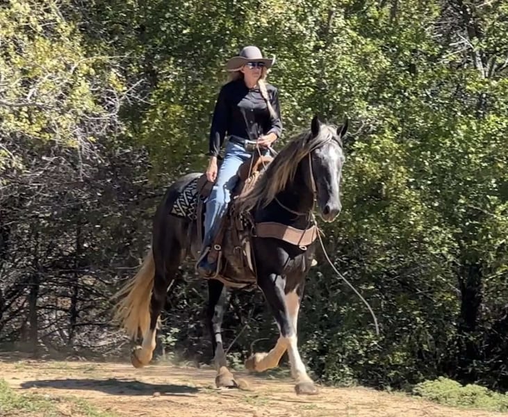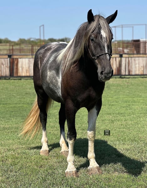 ONLINE AUCTION Place your bids at www.PlatinumEquineAuction.com Starting Bid $3500 Auction ends October 13th, 2024 Need a new saddle? Check out White Rock Saddles on our website or Facebook! Tin Man is a 4 year old Draft Cross Gelding standing 16 hands tall. He is extremely kind and gentle and full of personality. He is broke right and is soft to both hand and leg cues. We have ridden Tin Man out at the ranch, down the freeway, over the obstacles, and in the arena. He is sure footed, goes absolutely anywhere you ask him to, and is a fun and confident ride. We have started Tin Man roping slow cattle and pulling the log. He is gentle and has never offered to buck. He is very good to be around, saddle, bathe, pick feet, etc. We think Tin Man would make someone an awesome trail mount but he also has the athletic ability to be even fancier if someone wanted to go the performance horse world with him in either English or Western discipline. He is forward moving and perky eared and happy to go do something. Tin Man is sound and clean legged. FMI feel free to call/text Holland Horse Co. Chanel 559-978-6320. Located in Jacksboro, TX. We can help arrange shipping nationwide! ONLINE AUCTION Place your bids at www.PlatinumEquineAuction.com Starting Bid $3500 Auction ends October 13th, 2024 Need a new saddle? Check out White Rock Saddles on our website or Facebook!