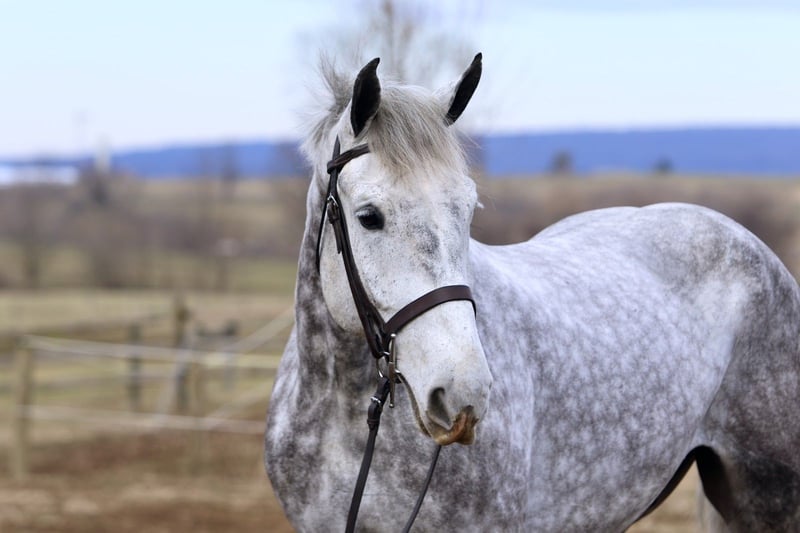 Dexter, 6-letni, 17-handowy siwy ogier typu percheron/Kentucky Mountain Horse