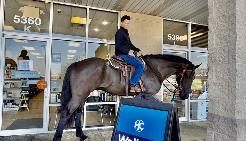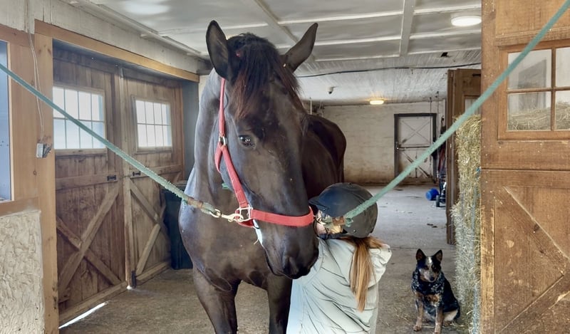 Ricky, 6-letni, czarny, mieszaniec konia Percheron/Friesian o wysokości 17,1 hh